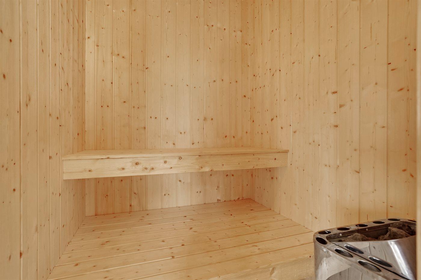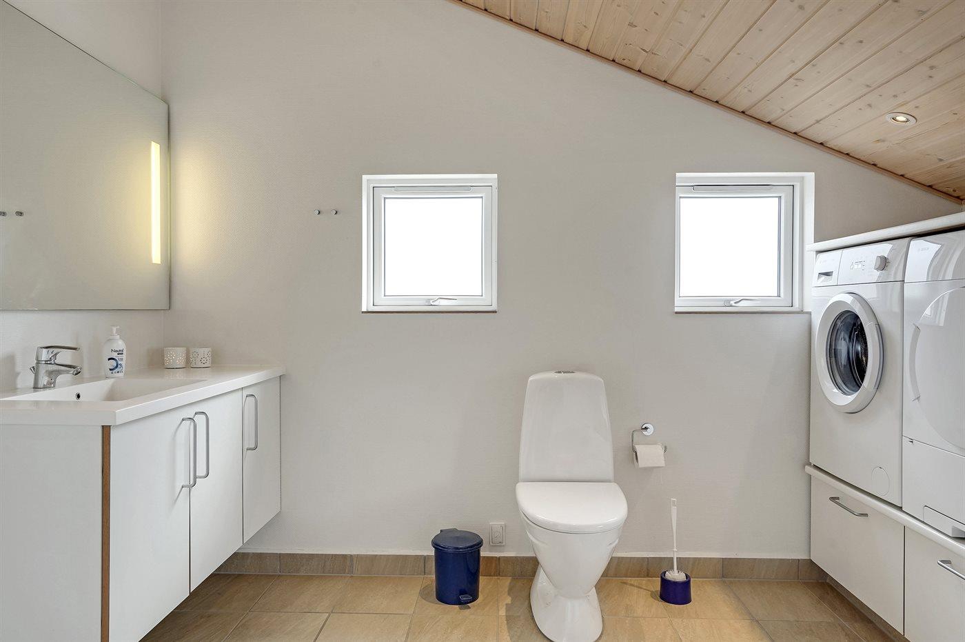 Der er 2 badeværelser med bruseniche og 2 toiletter. Der er gulvvarme på 2 badeværelser. I saunaen er der mulighed for afslapning.