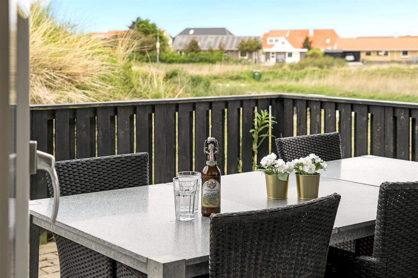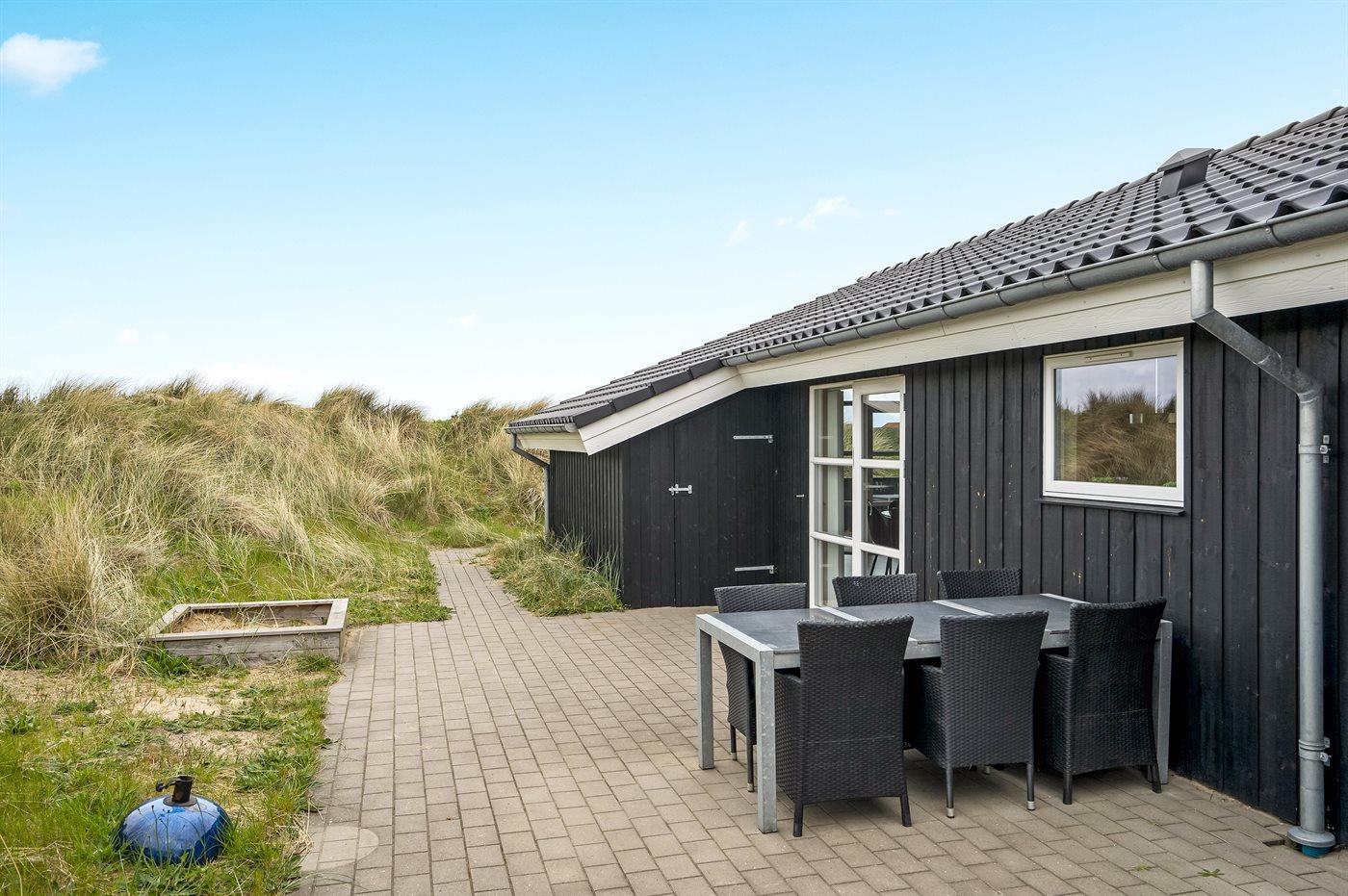 Ferieboligen er beliggende på en 1600 m² stor klitgrund. Der er 400 m til havet. Nærmeste forretning er beliggende i en afstand af 200 m. Til ferieboligen hører 53 m² terrasseareal. Desuden er der 10 m² overdækket terrasse. Sandkasse. Parkering ved ferieboligen.