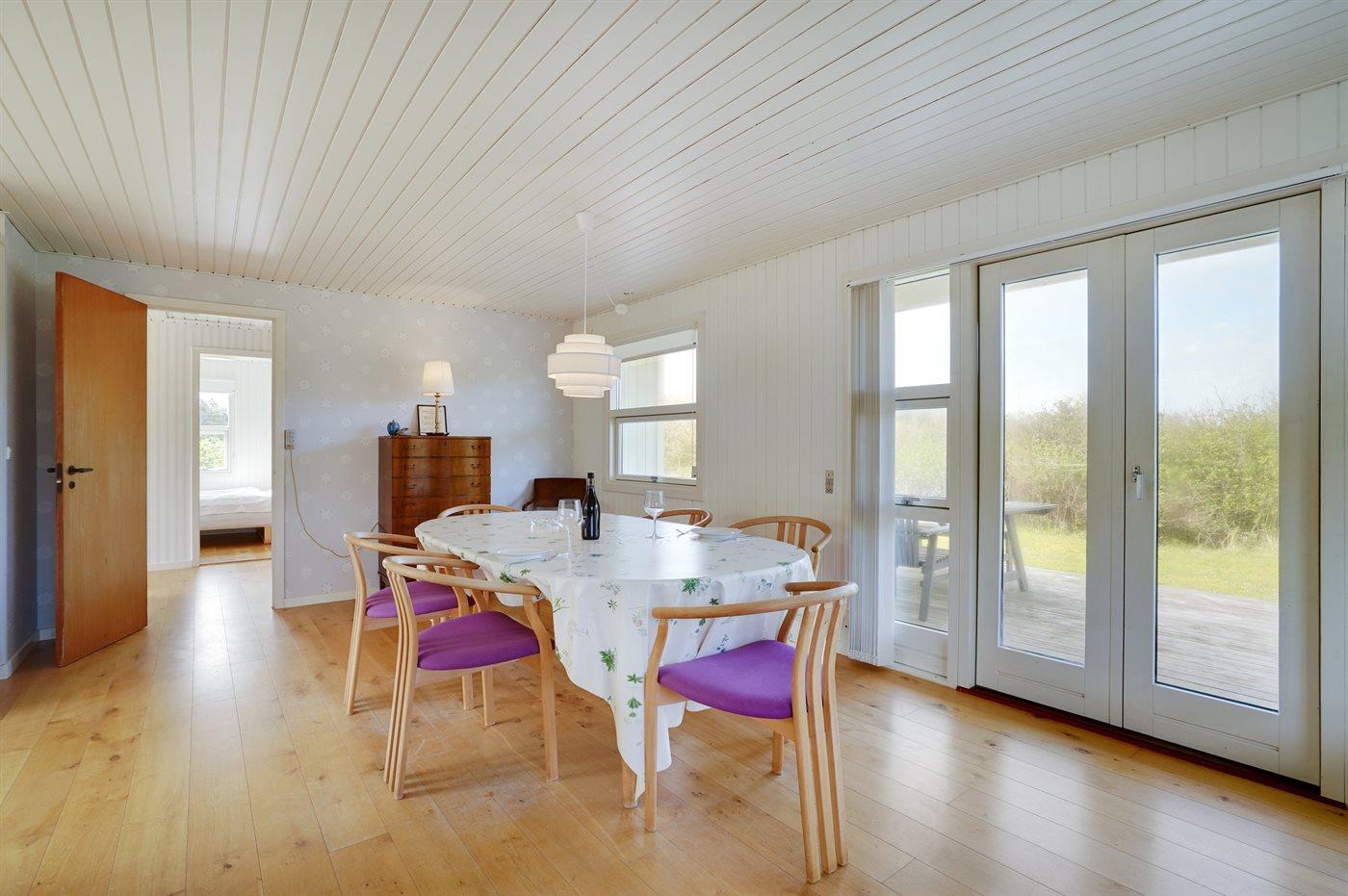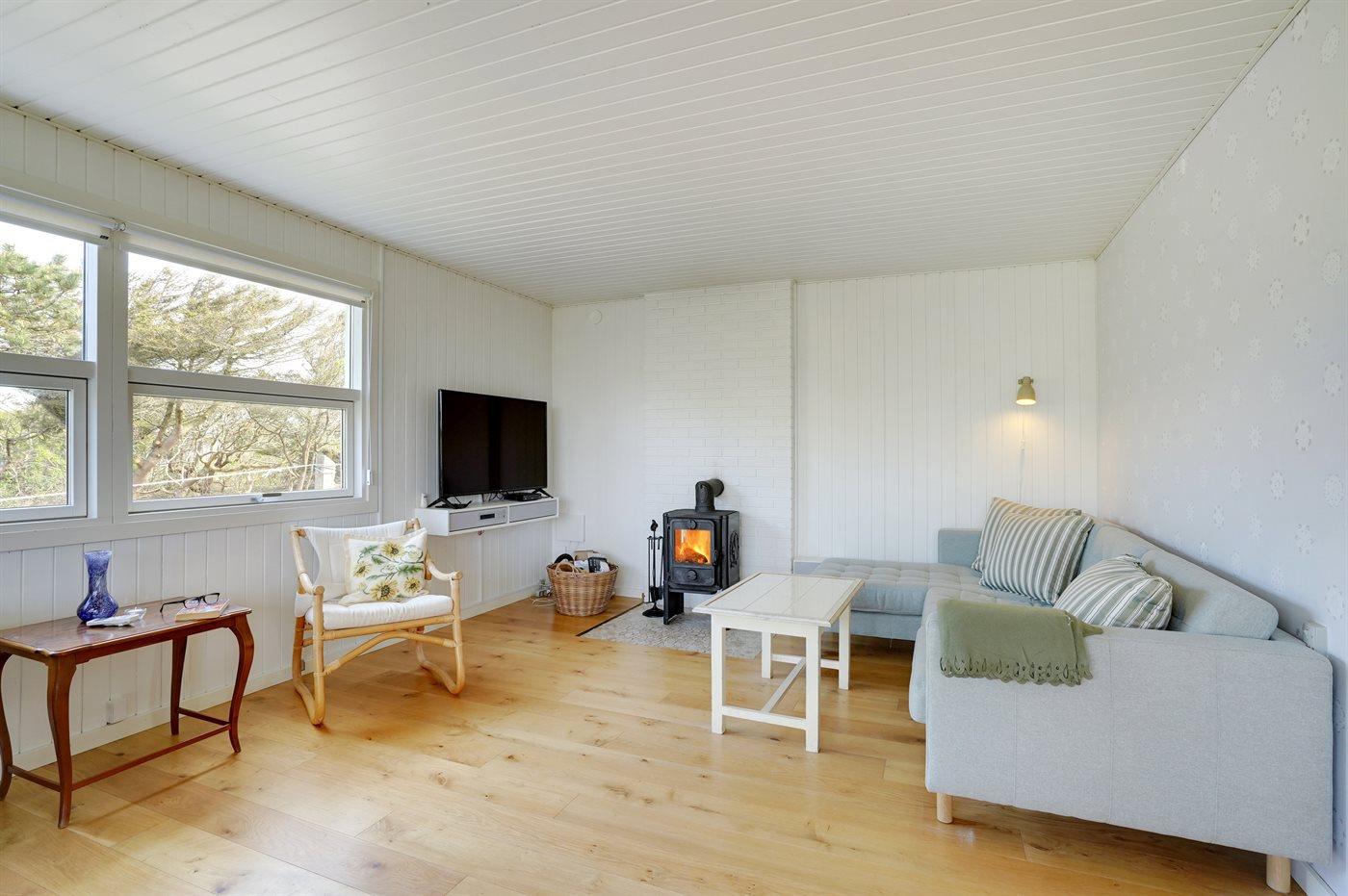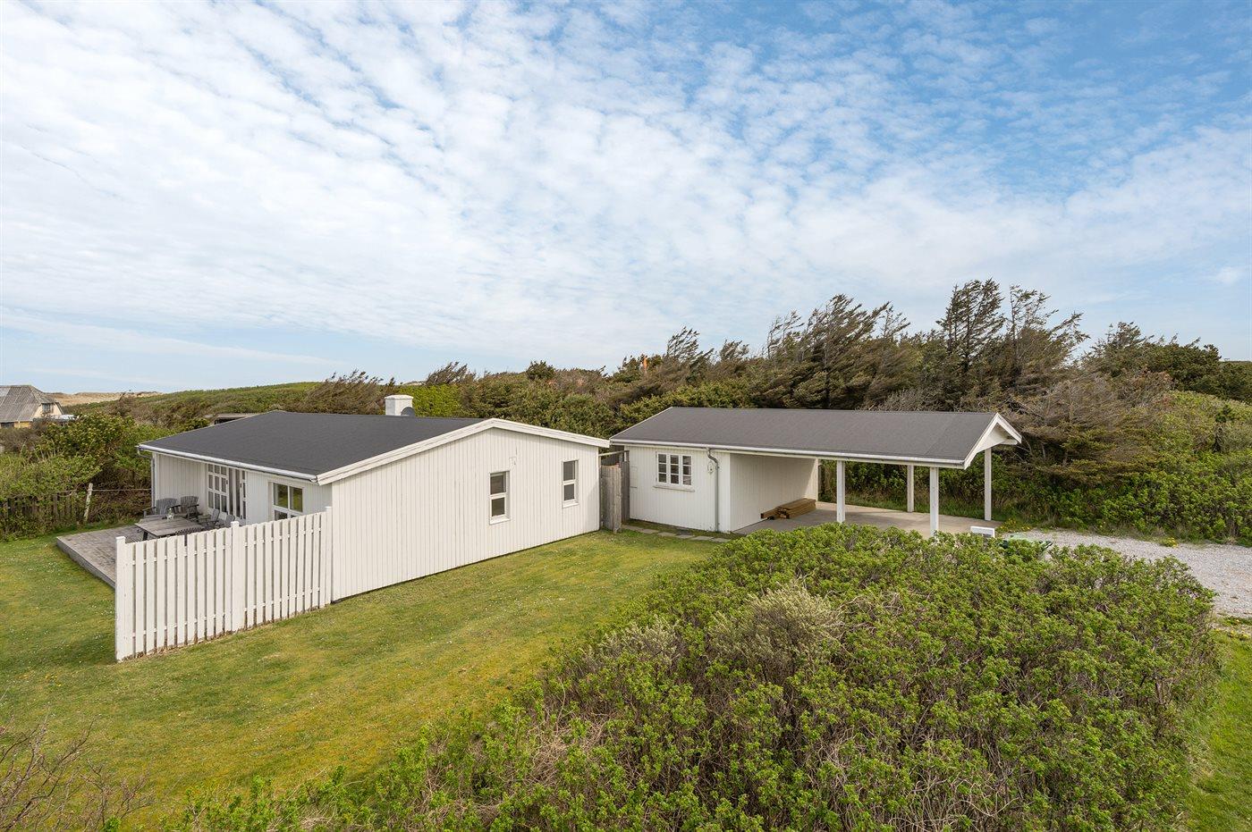 I læ af ege- og hybenkrat finder du dette smagfuldt indrettede sommerhus. Huset ligger kun ca. 150 m fra Klitmøllers bedste badestrand.