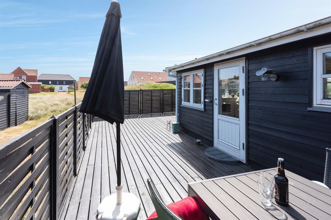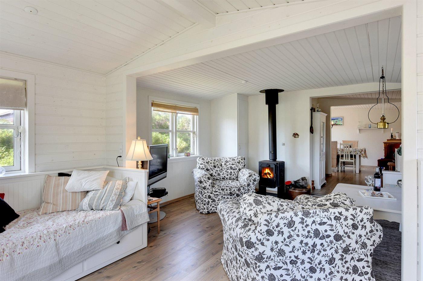 Hyggeligt sommerhus tæt på Klitmøllers bedste badestrand med brændeovn og lukket terrasse.