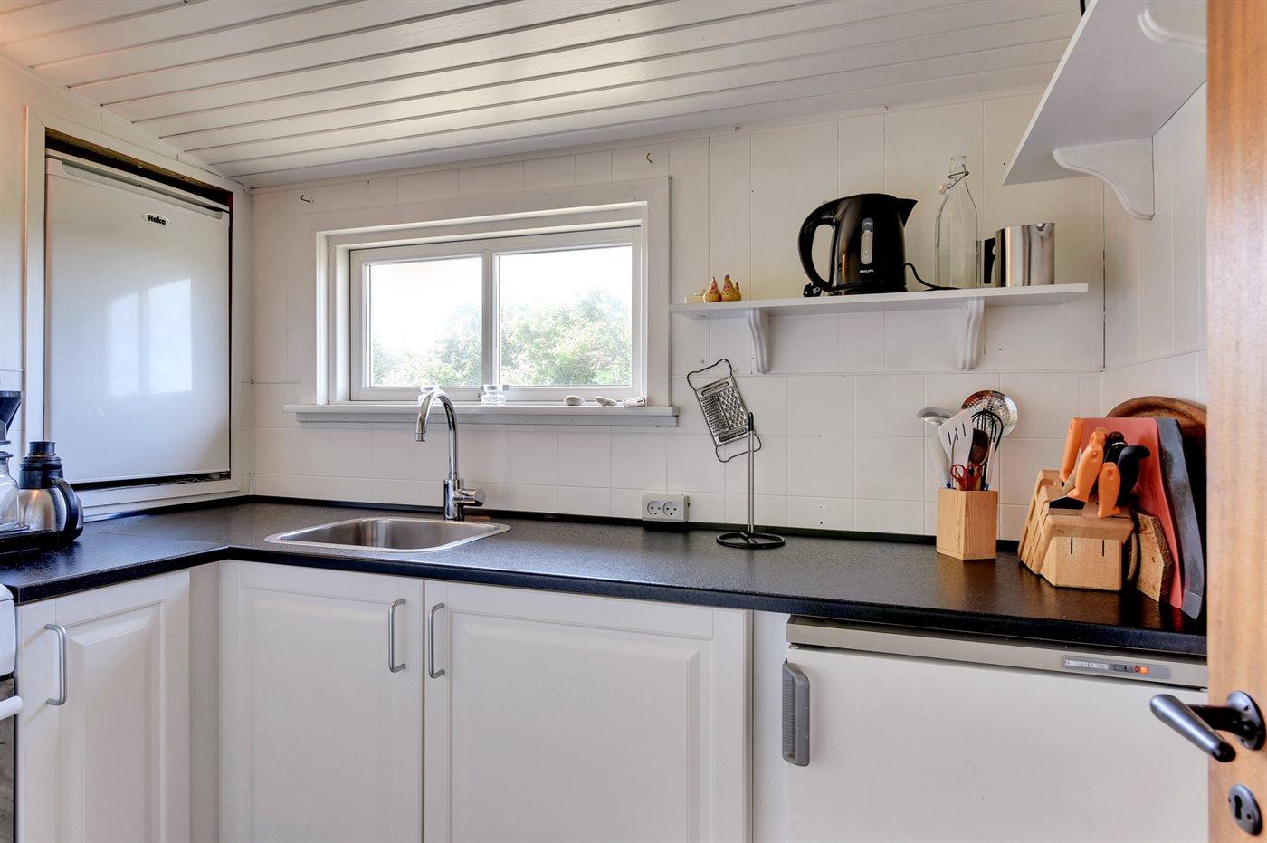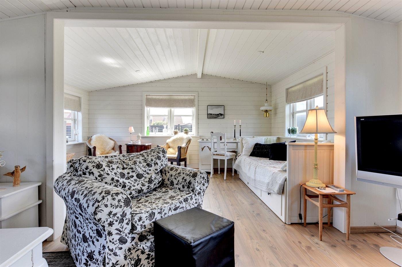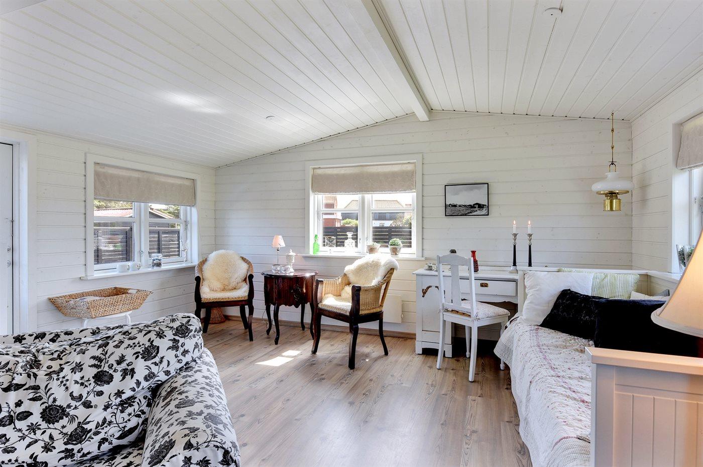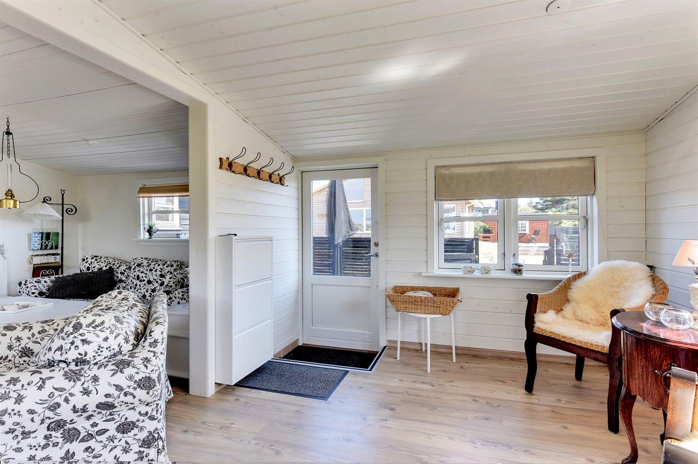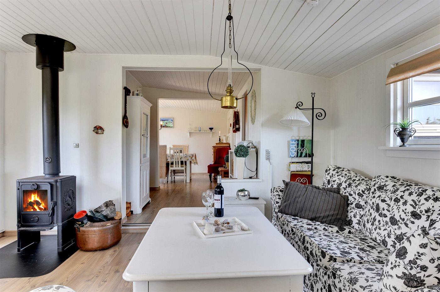 Ferieboligen er beliggende på en 738 m² stor naturgrund. Der er 100 m til havet. Nærmeste forretning er beliggende i en afstand af 200 m. Heraf i alt 30 m² lukket terrasse. Grill til rådighed.