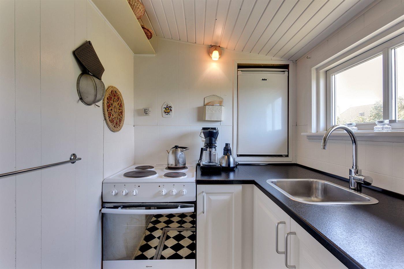 Køkkenet er udstyret med 1 køleskab. Der er 4 elkogeplader, varmluftovn.