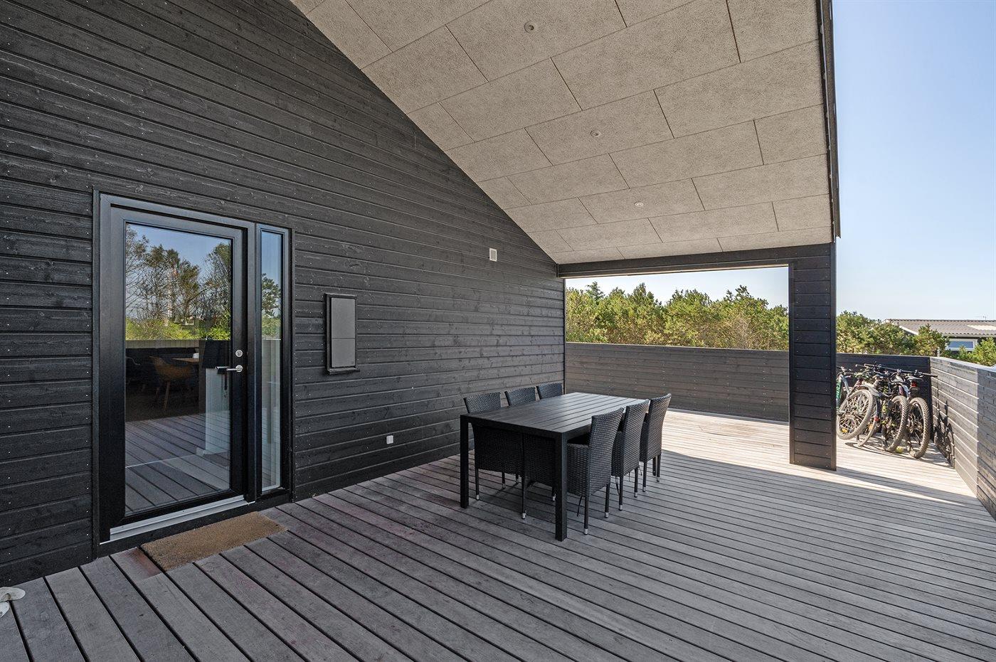 Til ferieboligen hører 78 m² åbent terrasseareal samt 39 m² overdækket terrasse, hvoraf en del fungerer som lækkert loungeområde med loungemøbler.