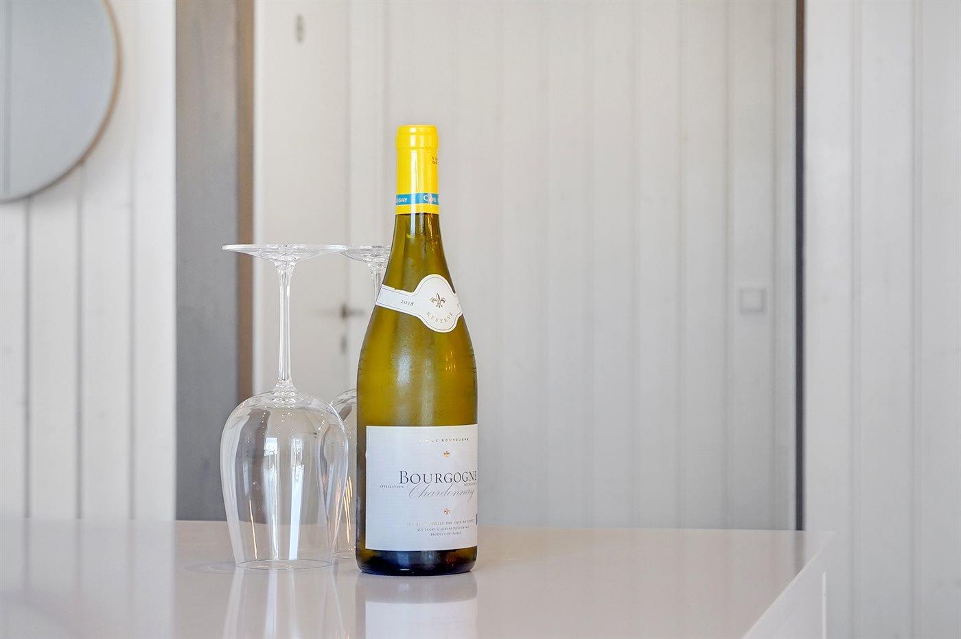 Køkkenet er udstyret med køle/fryseskab (fryser har kapacitet på 60 liter), opvaskemaskine, varmluftovn, mikrobølgeovn og 4 induktionskogeplader. Der er kvalitets-udstyr og service i skabene.