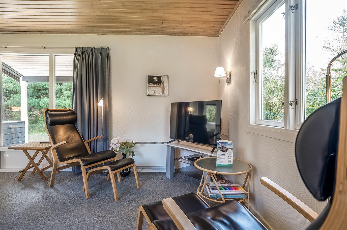 I ferieboligen er der 1 Smart-TV.1 Chromecast. Radio. CD-afspiller. Der er mindst 4 danske kanaler. 1-3 svenske kanaler. 1-3 norske kanaler. 1-3 tyske kanaler. Der er trådløst internet til rådighed.