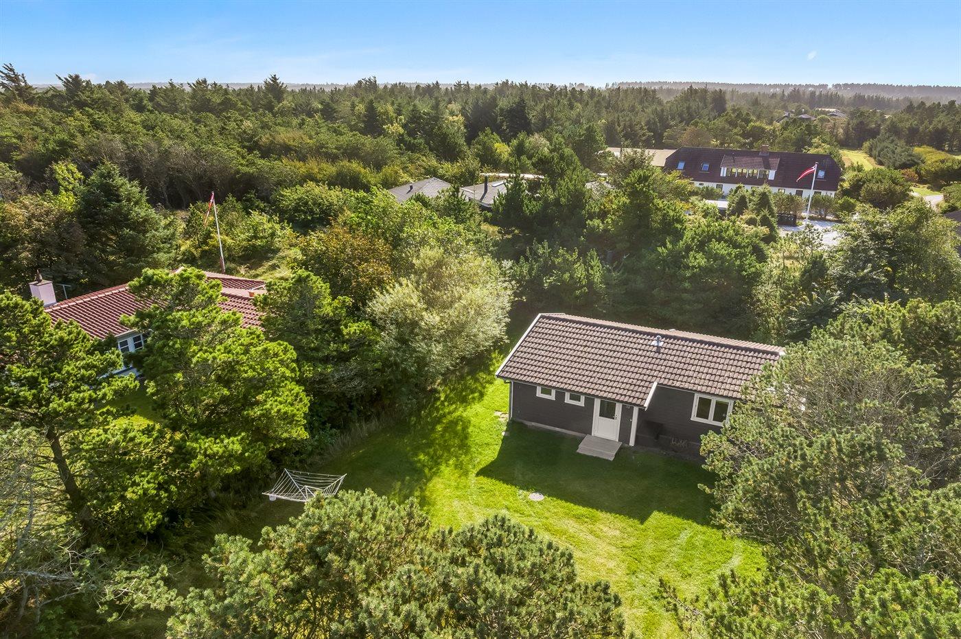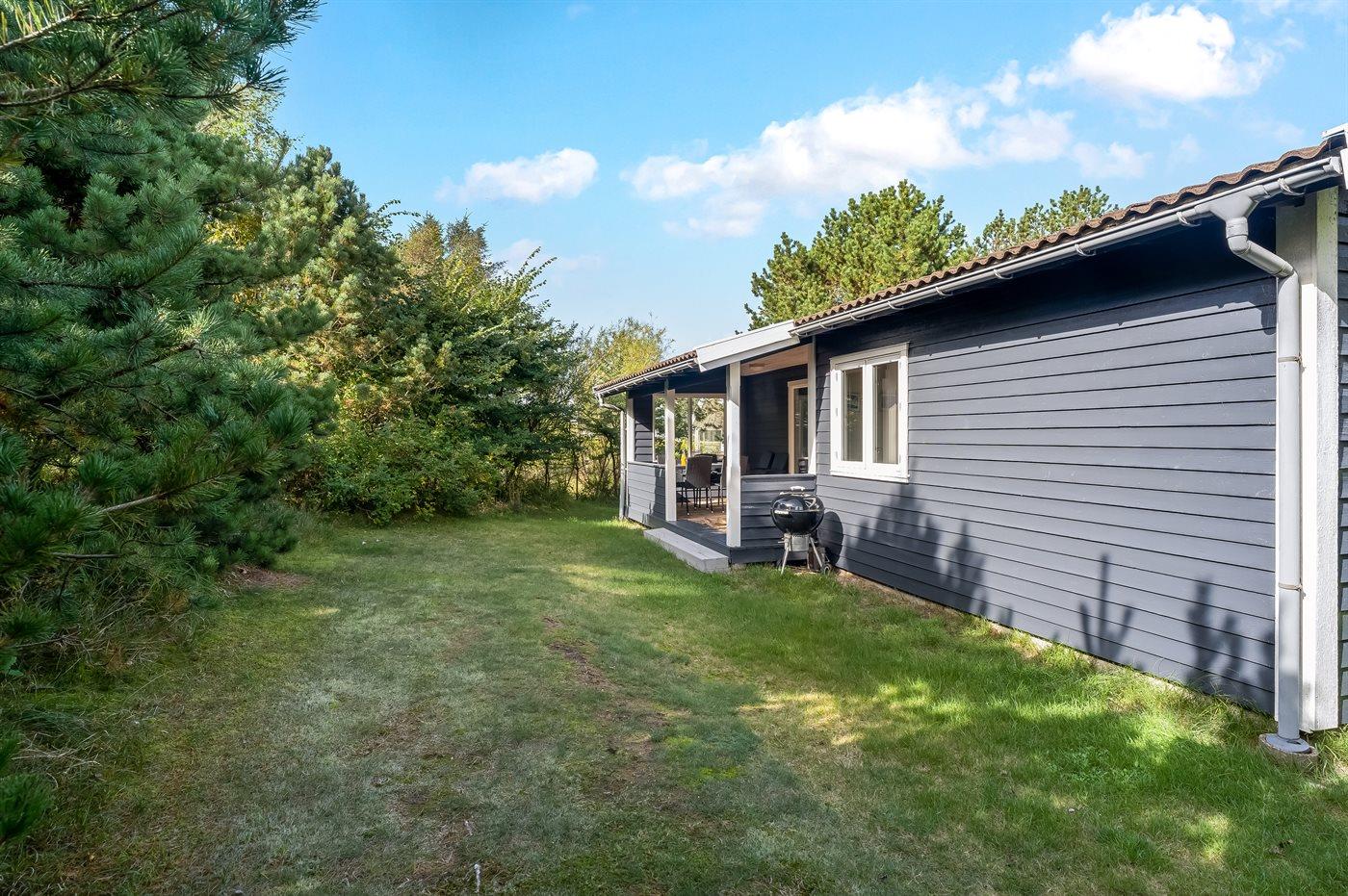 Ferieboligen er beliggende på en 1194 m² stor naturgrund. Der er 800 m til havet. Nærmeste forretning er beliggende i en afstand af 300 m. Der er en golfbane i en afstand af 3000 m. Til ferieboligen hører 15 m² terrasseareal. Desuden er der 10 m² overdækket terrasse. Der er redskabsrum. Grill til rådighed. Parkering ved ferieboligen.
