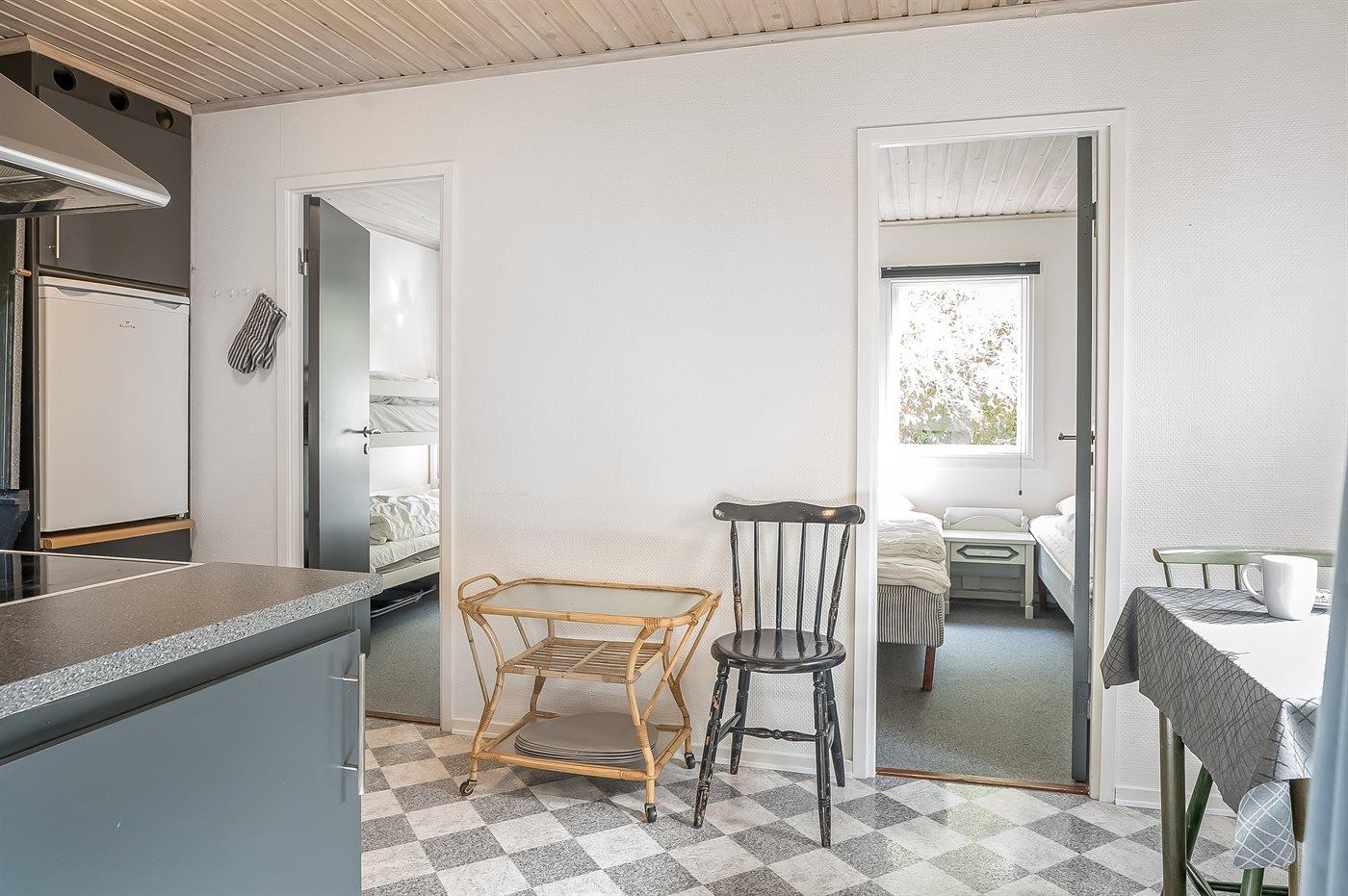 Der er i alt 2 soveværelser. Sovepladserne fordeler sig på: 3 sovepladser i enkeltsenge. 2 sovepladser i køjeseng.