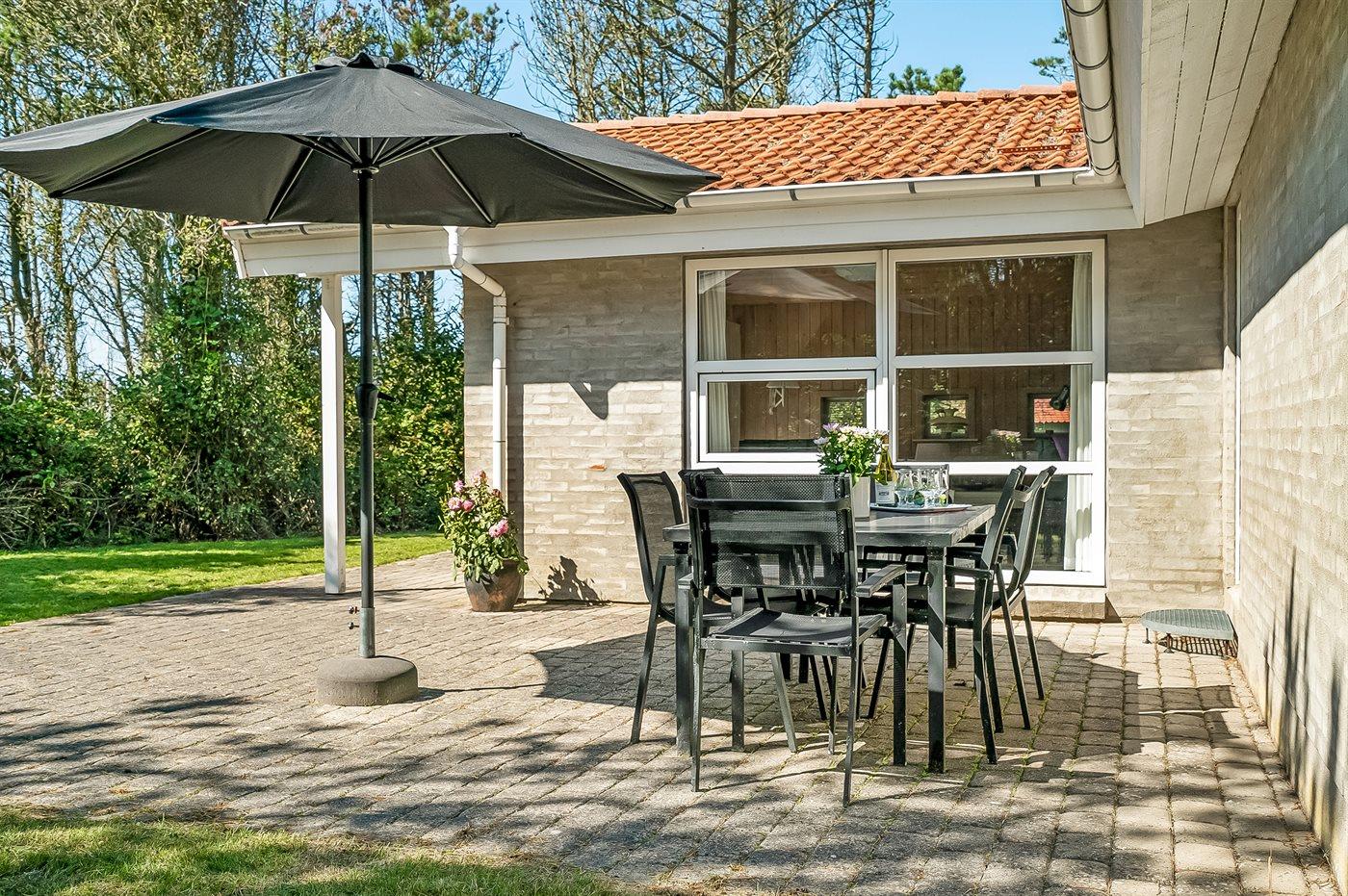 Ferieboligen er beliggende på en 1300 m² stor havegrund. Der er 350 m til havet. Nærmeste forretning er beliggende i en afstand af 900 m. Til ferieboligen hører 40 m² terrasseareal. Der er redskabsrum. Parkering ved ferieboligen.