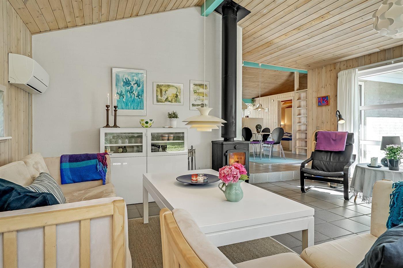 Sommerhuset egner sig til 7 personer samt 1 barn op til 3 år. 1 af sovepladserne er kun egnet til større børn (4-11 år). Ferieboligen er på 111 m² og er bygget i 1991. Det er tilladt at medbringe 1 husdyr. Ferieboligen er udstyret med energibesparende varmepumpe. Ferieboligen har vaskemaskine. Tørretumbler. Frysekapacitet på 65 liter. Der er desuden brændeovn. Til de små er der 1 stk. barnestol.