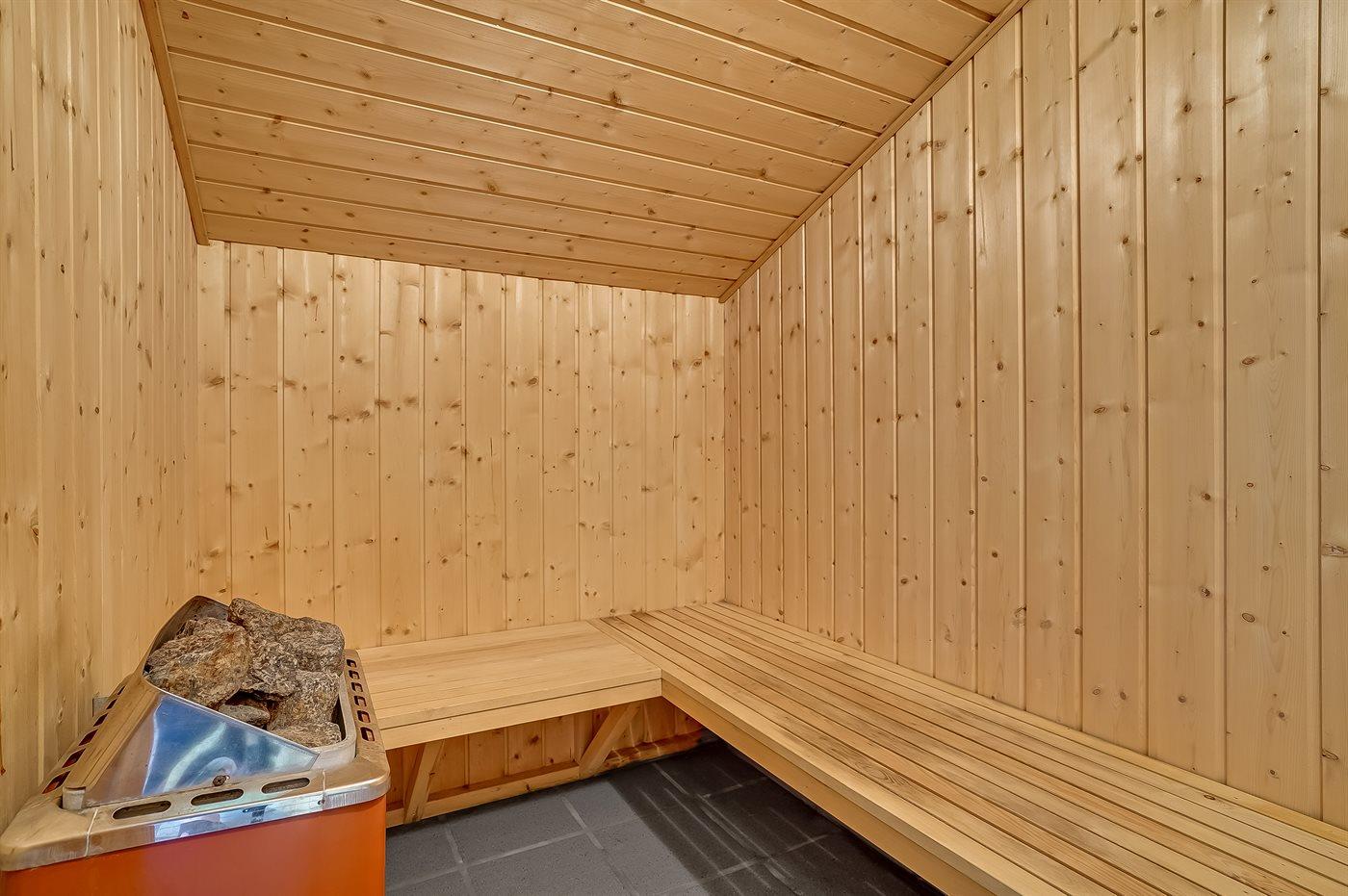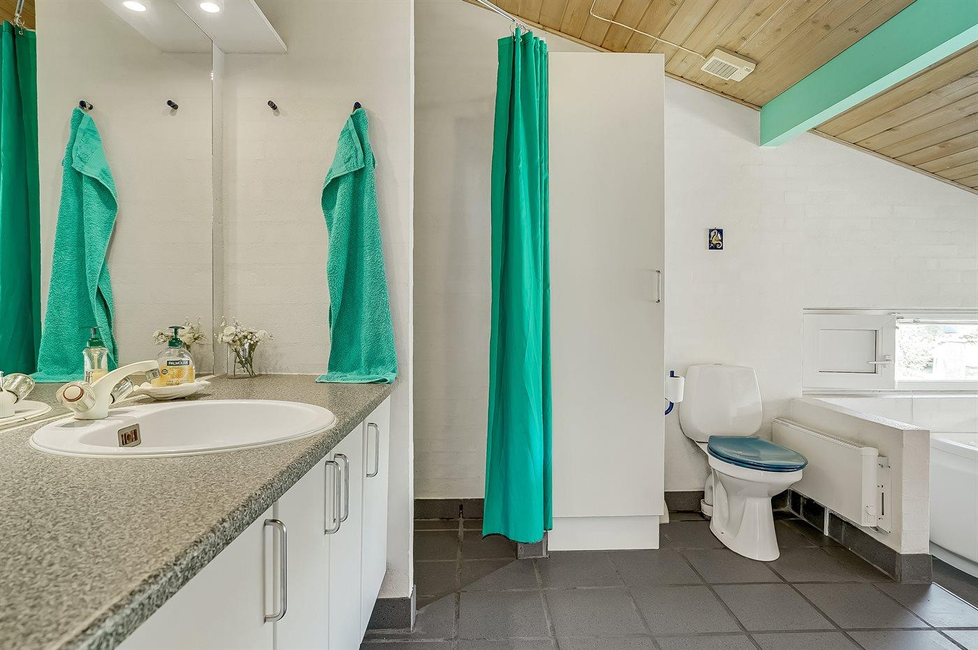 Der er 1 badeværelse med bruseniche og 1 toilet.. Der er gulvvarme på 1 badeværelse. I saunaen er der mulighed for afslapning.