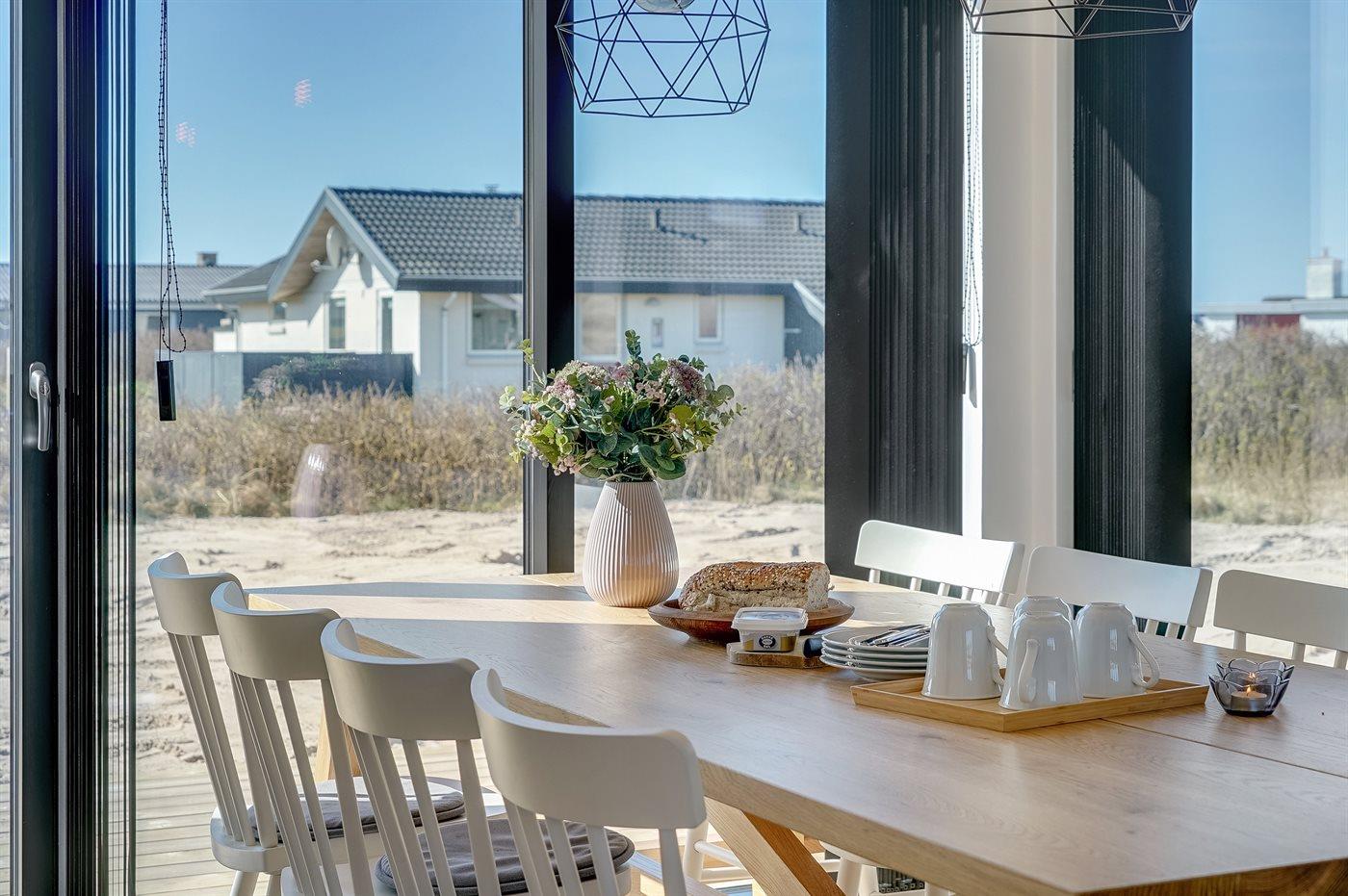 Ferieboligen er beliggende på en 1050 m² stor klitgrund. Der er 50 m til havet. Nærmeste forretning er beliggende i en afstand af 500 m. Der er en golfbane i en afstand af 4000 m. Til ferieboligen hører 122 m² terrasseareal. Desuden er der 30 m² overdækket terrasse. Der er redskabsrum. Udendørs sauna. Parkering ved ferieboligen.