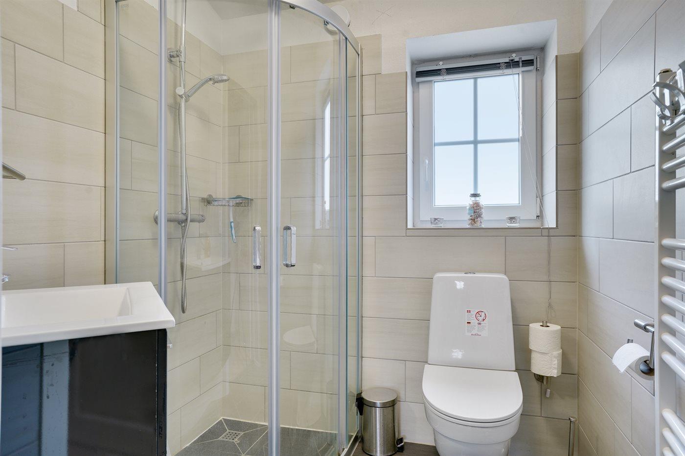 Der er 1 badeværelse med bruseniche og 1 toilet.