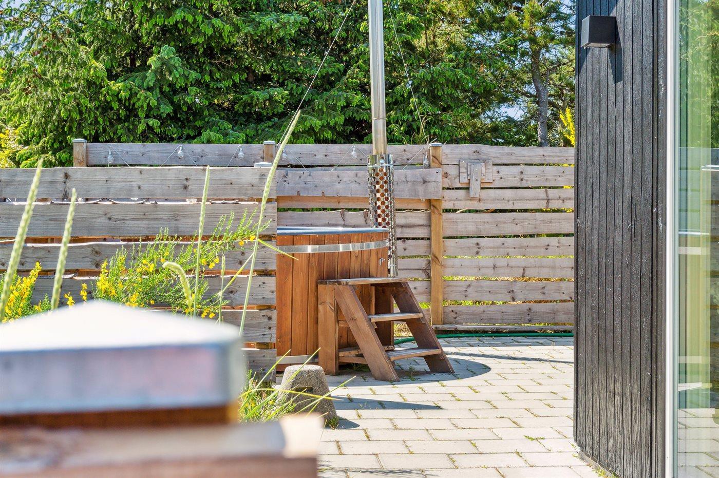 Der er mulighed for afslapning i det udendørs vildmarkskar til 4 personer.