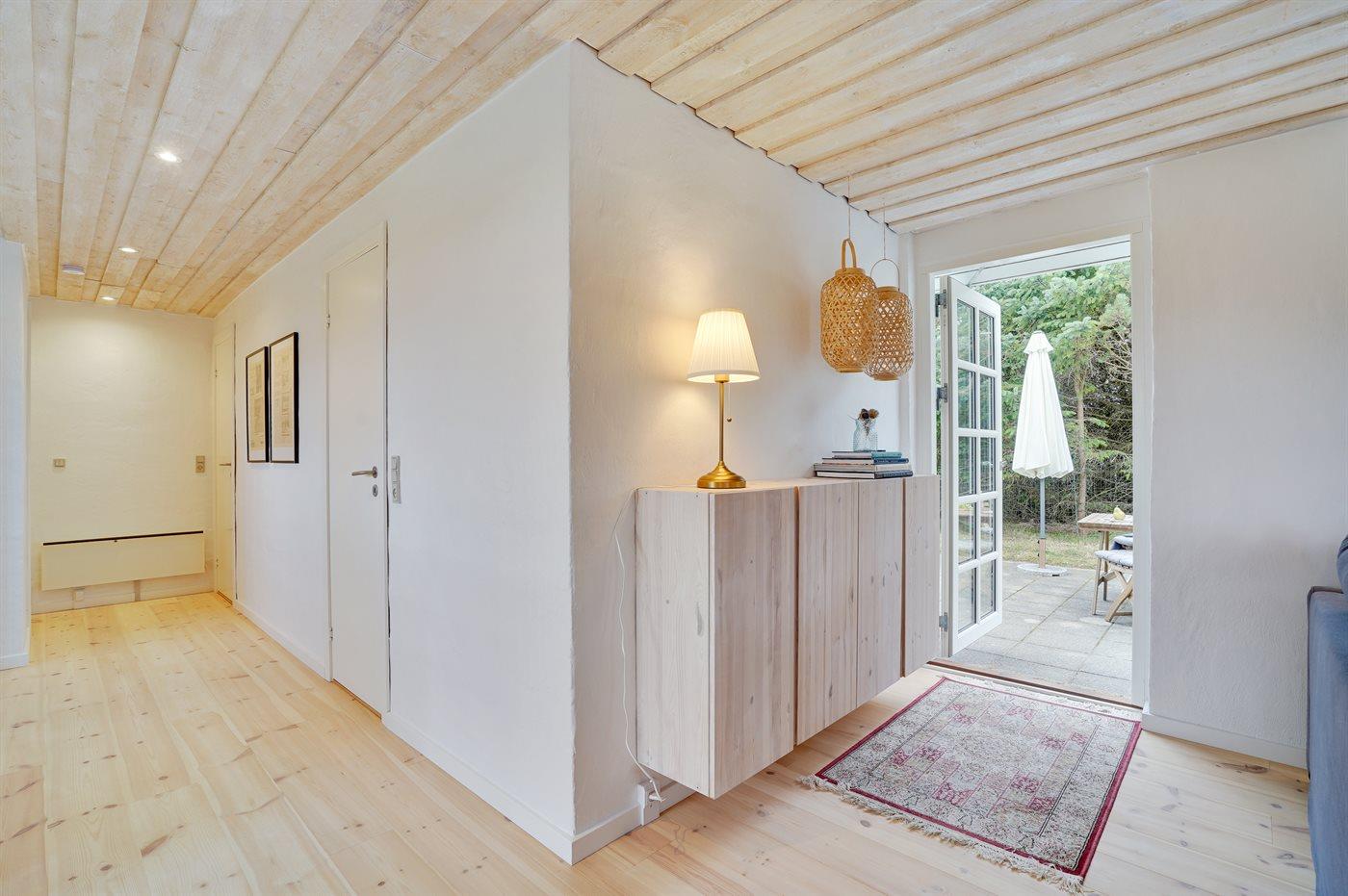 Med en super god beliggenhed, tæt på klitområdet og den dejlige sandstrand, finder I dette dejlige sommerhus, som fremtræder lyst og indbydende. Sommerhuset er renoveret i 2021 med bl.a. nye viking plankegulve, nyt køkken, badeværelse og der er malet indvendigt. Til huset hører en god, sydvendt terrasse, som afgrænses af træer. Bemærk, at der udover 2 soveværelser findes 2 sovepladser på en dobbelt sovesofa i opholdsstuen.