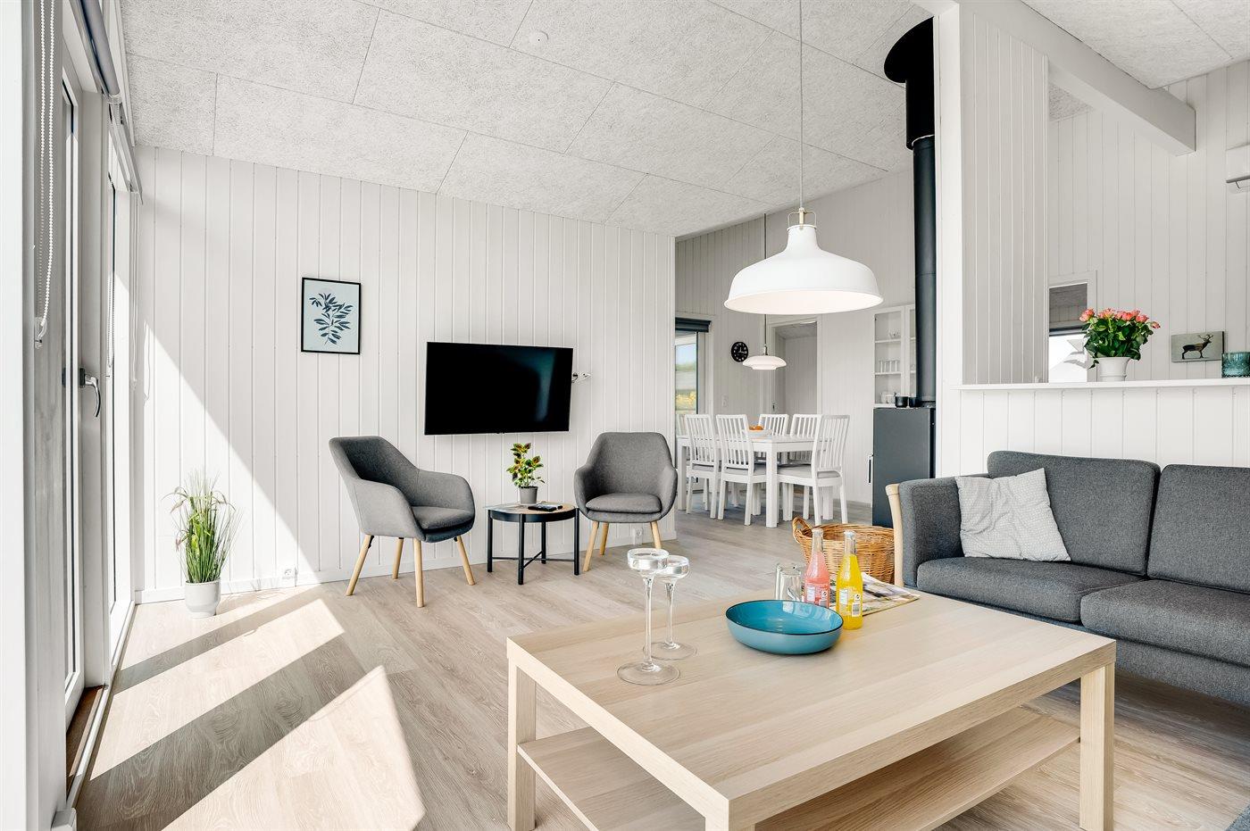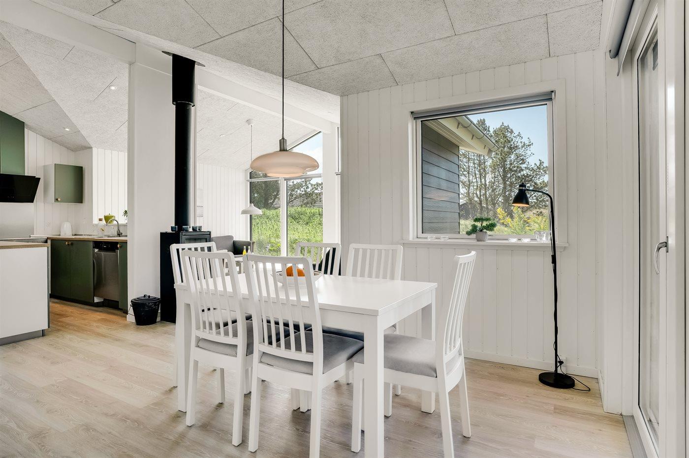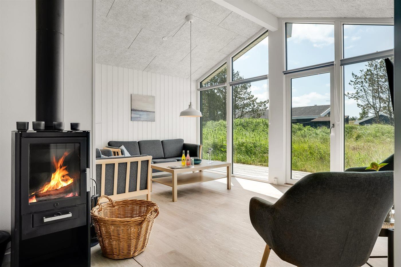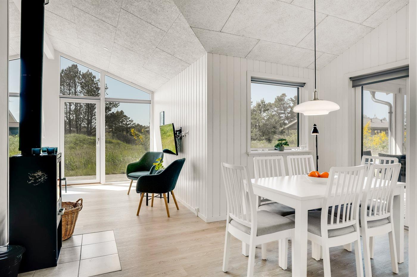 I et roligt sommerhusområde i Klitmøller ligger dette flotte, nyopførte sommerhuset, som er indrettet i nordisk stil holdt i lyse farver. Til huset hører en dejlig og til dels overdækket terrasse med gode læmuligheder.