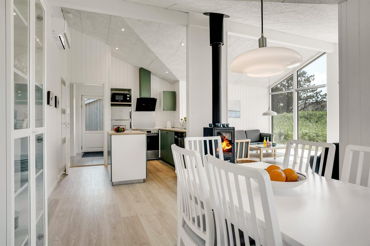 Sommerhuset egner sig til 6 personer. Ferieboligen er på 95 m² og er bygget i 2022. Det er ikke tilladt at medbringe husdyr. Ferieboligen er udstyret med 1 energivenlig luft til luft varmepumpe. Ferieboligen har vaskemaskine. Tørretumbler. Frysekapacitet på 20 liter. Der er desuden brændeovn. Til de små er der 1 stk. barnestol.