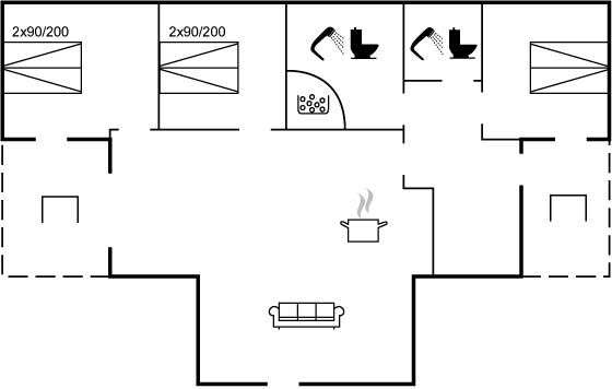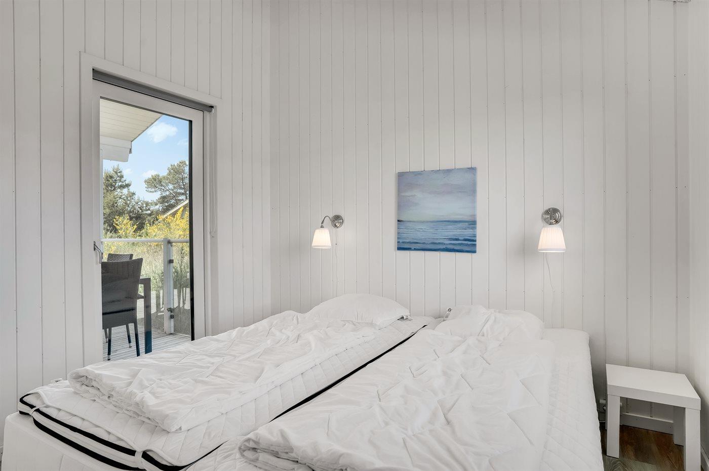 Der er i alt 3 soveværelser. Sovepladserne fordeler sig på: 6 sovepladser i enkeltsenge. Derudover er der 1 stk. barneseng.