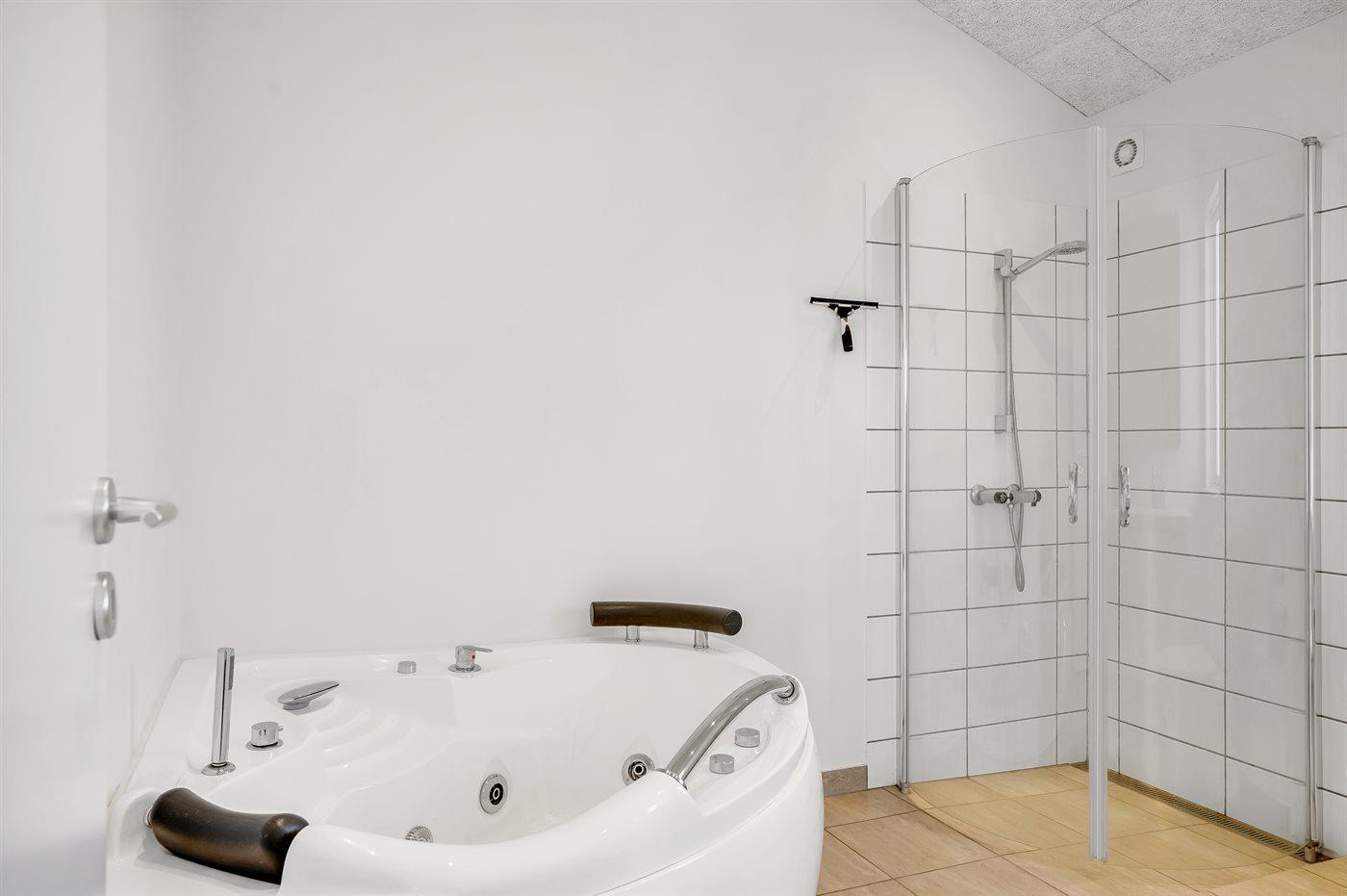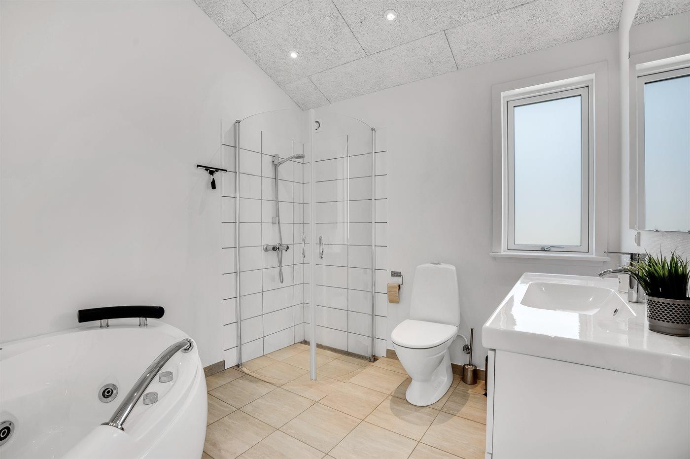 Der er 2 badeværelser med bruseniche og 2 toiletter. Der er gulvvarme på 2 badeværelser.