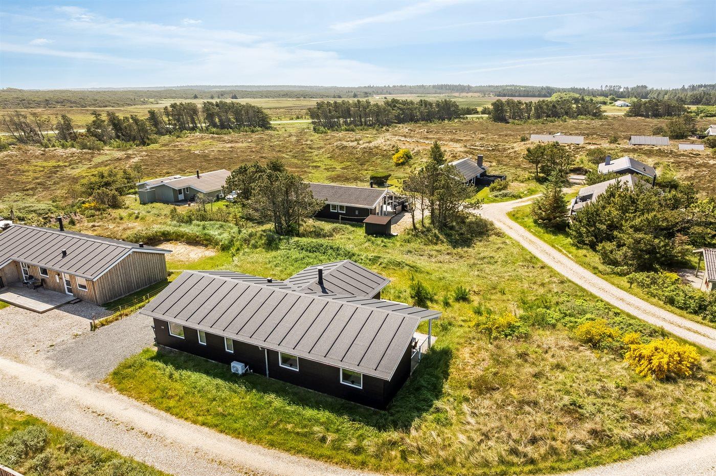 Flot, nybygget sommerhus i nordisk stil med spa og elbiloplader nær Klitmøllers strand.