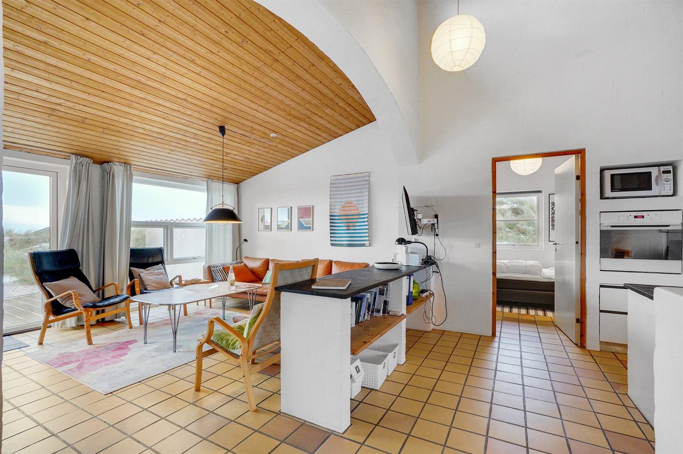 Kun få minutters gang fra Vesterhavet ligger dette dejlige, arkitekttegnede sommerhus med bl.a. swimmingpool. Her er der virkelig kræset for detaljerne og der er højt til loftet i mere end en forstand.