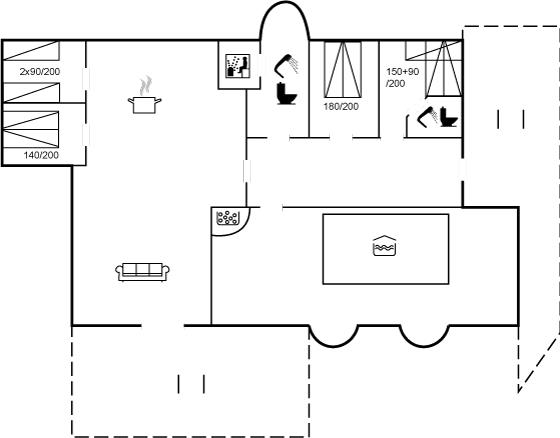 Der er i alt 4 soveværelser. Sovepladserne fordeler sig på: 4 sovepladser i dobbeltsenge. 2 sovepladser i enkeltsenge. 2 sovepladser i køjeseng. 1 soveplads i sovesofa (enkelt). 1 af disse sovepladser befinder sig på husets hems. Derudover er der 1 stk. barneseng.