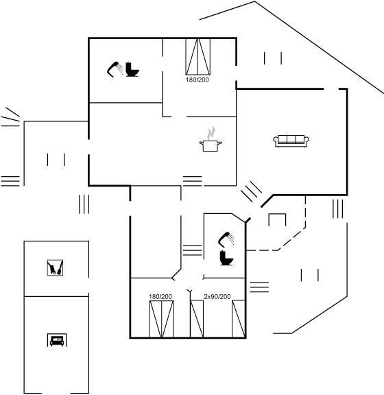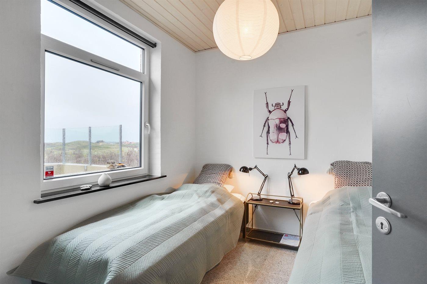 Der er i alt 3 soveværelser. Sovepladserne fordeler sig på: 4 sovepladser i dobbeltsenge. 2 sovepladser i enkeltsenge.