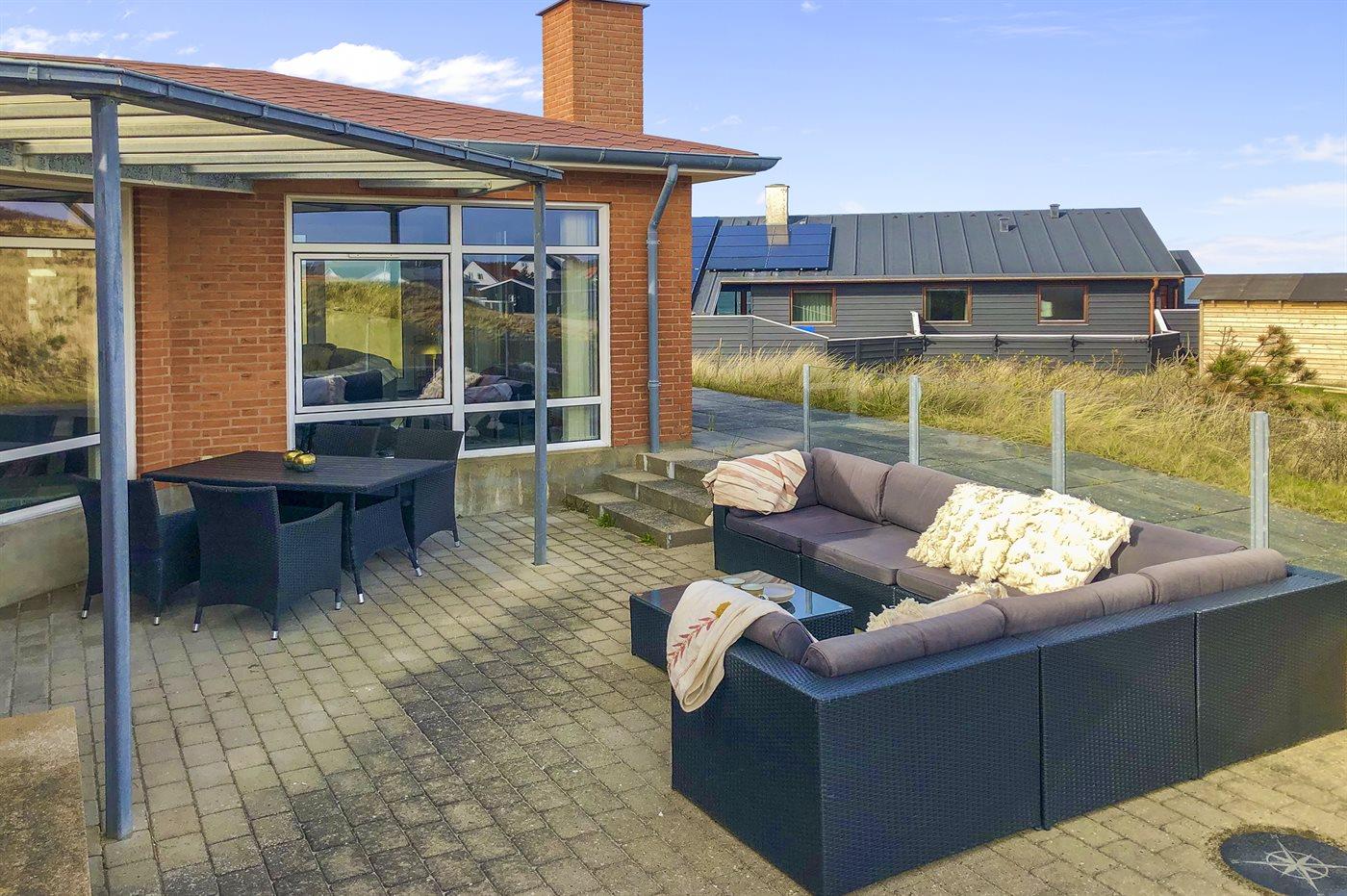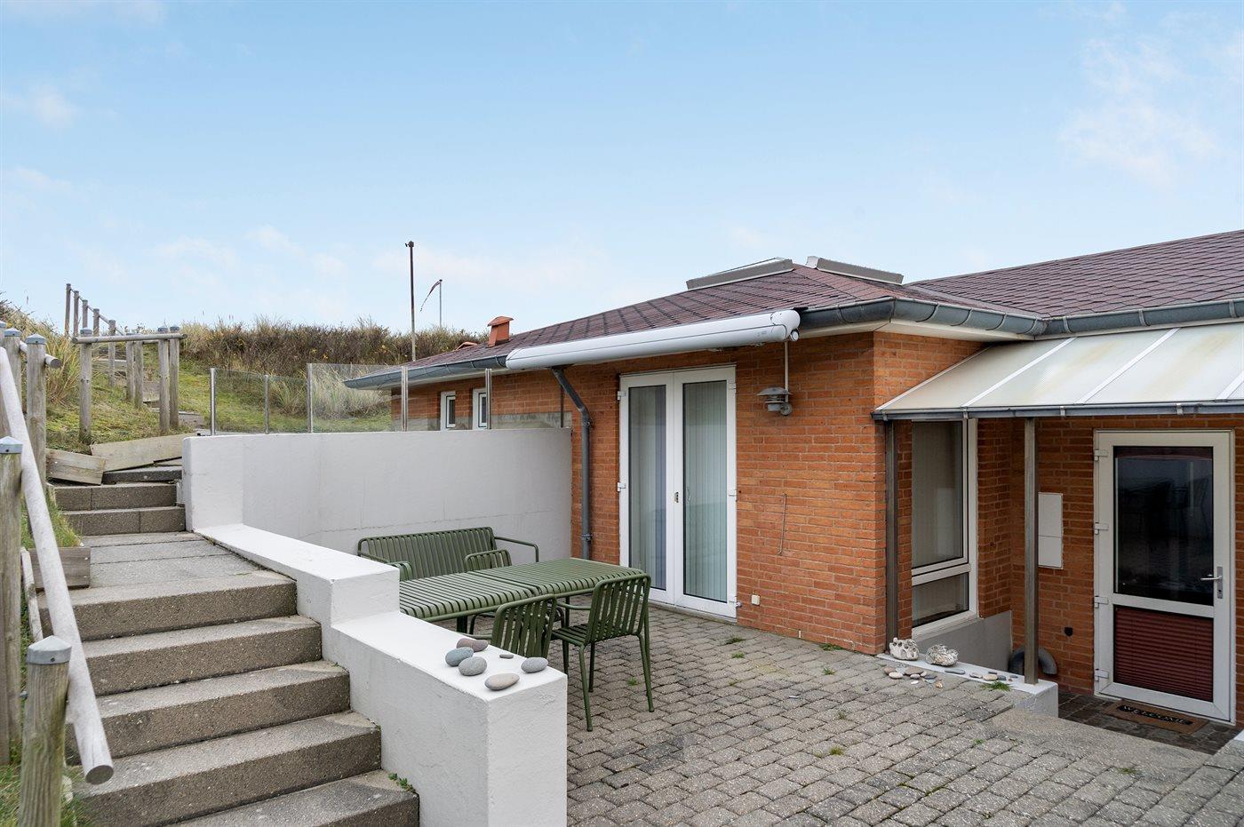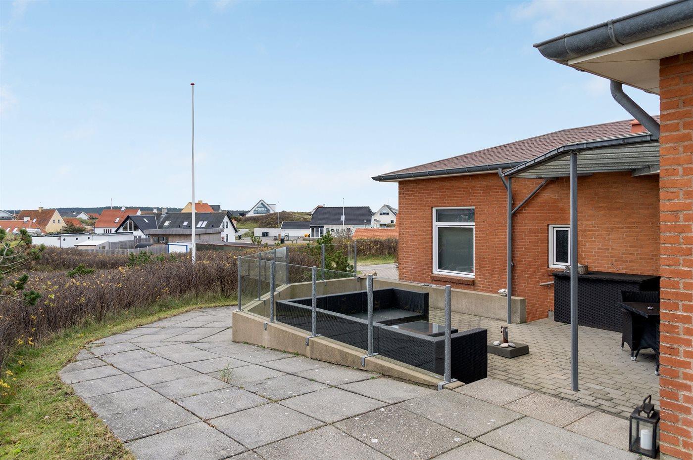 Ferieboligen er beliggende på en 1365 m² stor naturgrund. Der er 100 m til havet. Nærmeste forretning er beliggende i en afstand af 800 m. Der er en golfbane i en afstand af 5000 m. Til ferieboligen hører åbent terrasseareal. Desuden er der overdækket terrasse. Der er redskabsrum. Udendørs bruser. Grill til rådighed. Parkering ved ferieboligen.