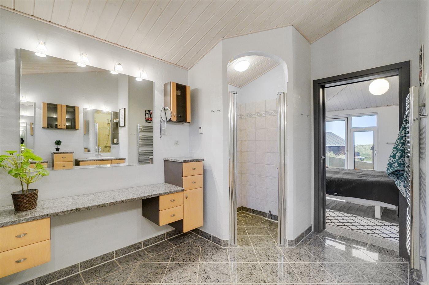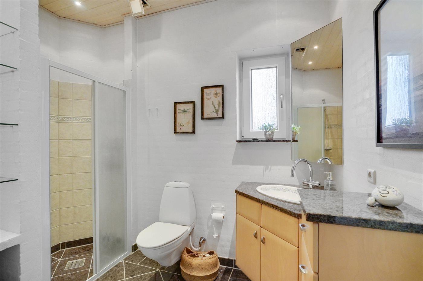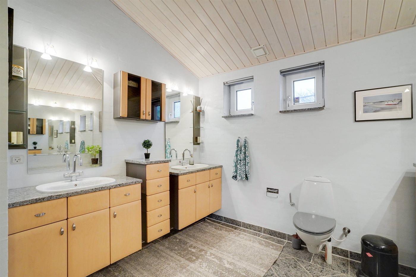Der er 2 badeværelser med bruseniche og 2 toiletter. Der er gulvvarme på 2 badeværelser.