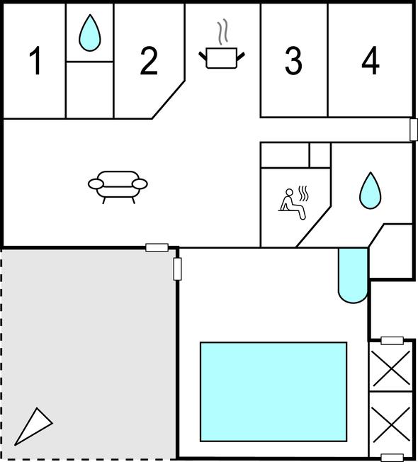 Badeværelse 4m2 (nr. 1) - WC. Varmt og koldt vand. Bruser