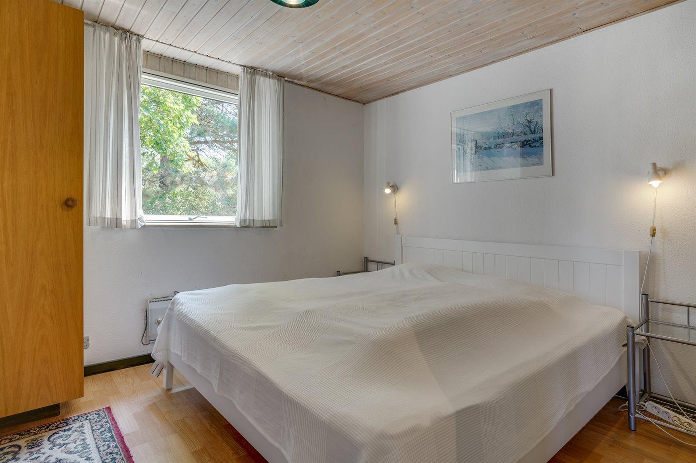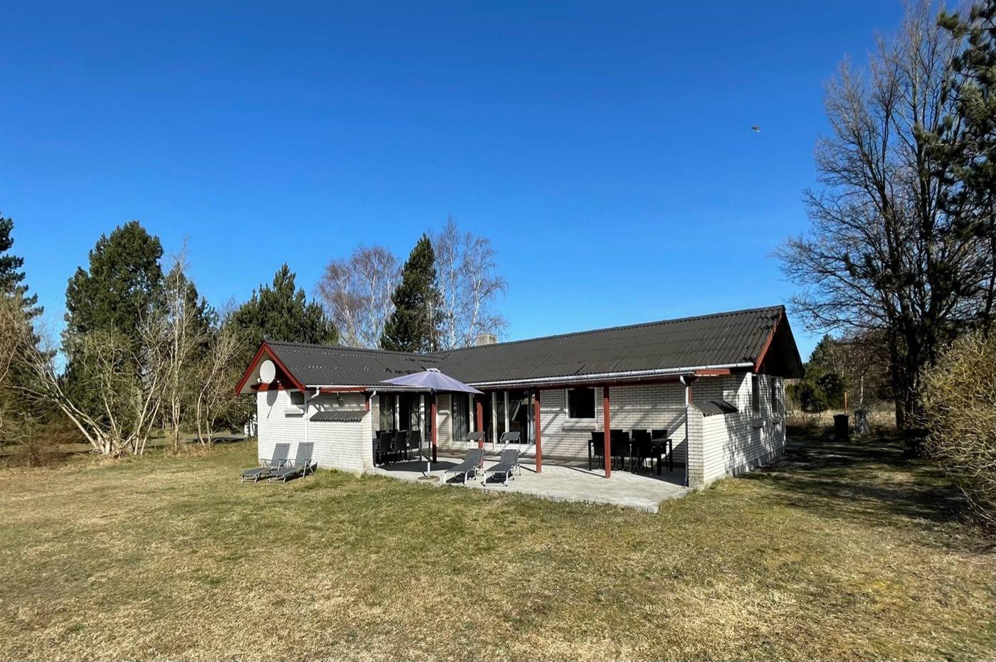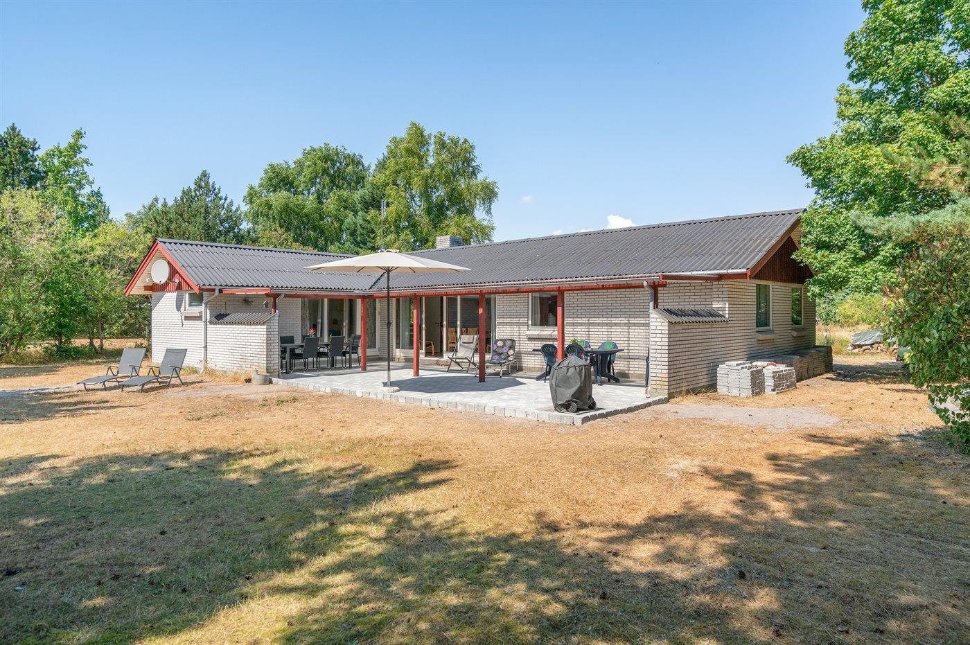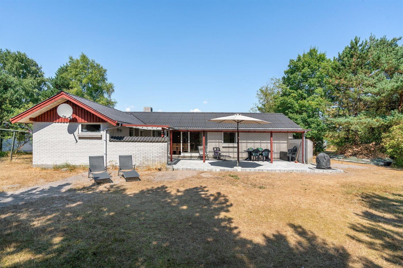 Skønt sommerhus i sten. Huset er beliggende på en naturgrund for enden af en blind vej - kun 400 m fra havet. Til huset hører såvel åben som overdækket terrasse med havemøbler. Huset er indrettet med dejlig stor opholdsstue med nyt klinkegulv og træbeklædte vægge og lofter. Sovepladserne fordeler sig på 4 soveværelser og er derfor velegnet som feriemål for 2 familier. Stuen er udstyret med brændeovn, TV med parabol (digital), DVD-afspiller, video, stereoanlæg med CD-afspiller og Wifi internet (computer skal medbringes). Køkkenet er indrettet med bl.a. fryser, mikrobølgeovn og opvaskemaskine. 2 badeværelser med klinkegulv og bruseniche. Dejlig spa-afdeling, der foruden 2-personers spa også indeholder en stor sauna. Der kan fra spa-afdelingen åbnes dør ud til terrassen. Huset opvarmes dels med brændeovn, dels med varmepumpe og dels med elradiatorer. Vaskemaskine og tørretumbler, høj barnestol og barneseng står også til rådighed for husets gæster. Der forefindes legeplads ganske tæt ved huset. Et godt sommerhus året rundt.