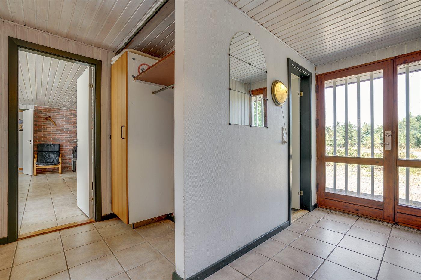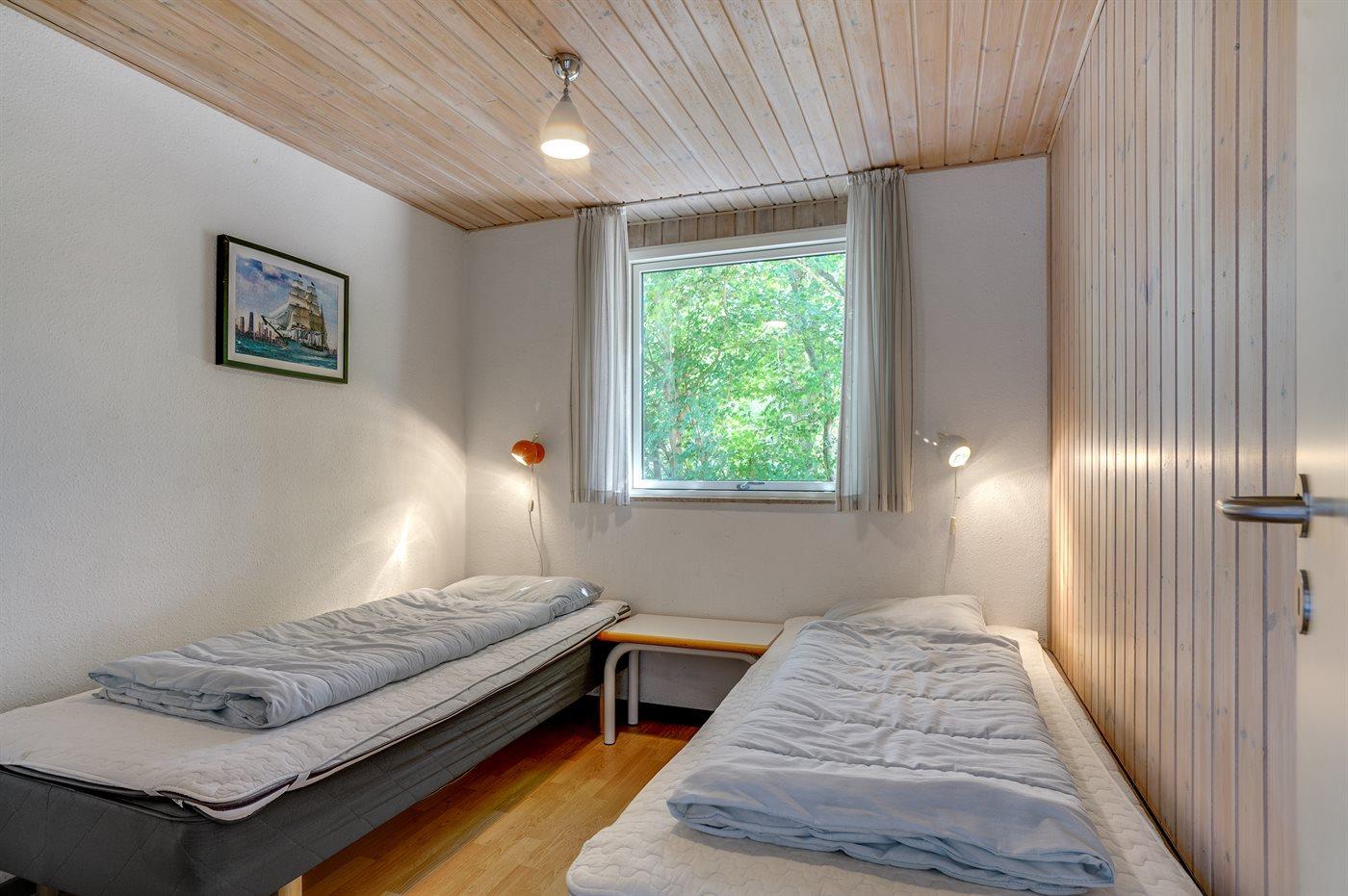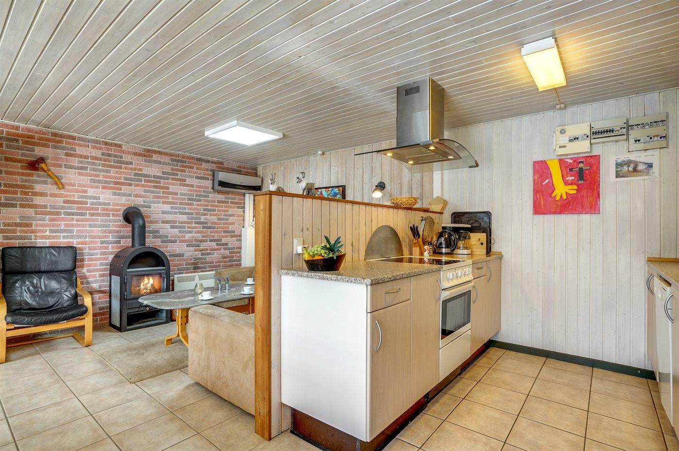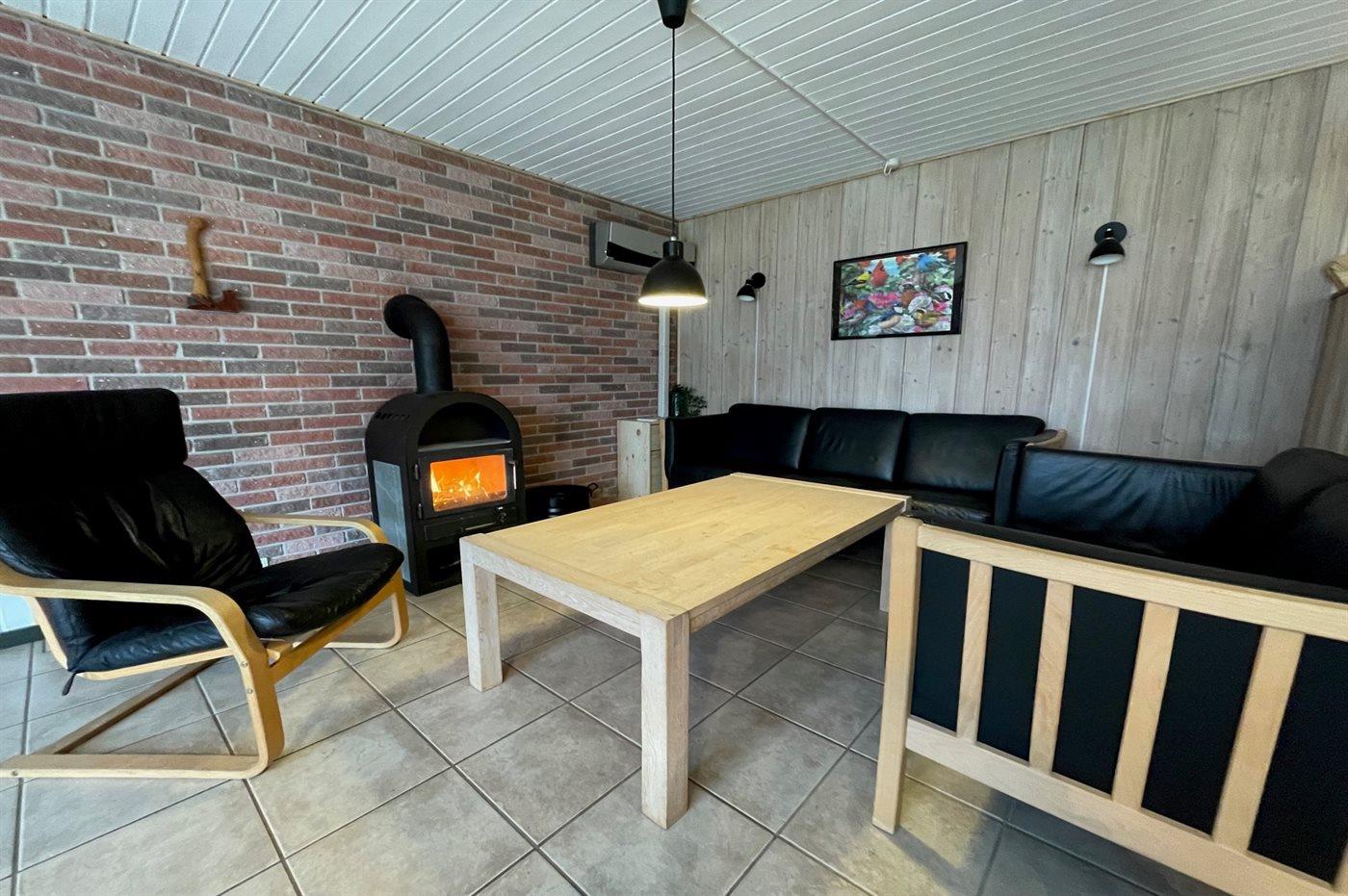Skønt sommerhus i sten. Huset er beliggende på en naturgrund for enden af en blind vej - kun 400 m fra havet. Til huset hører såvel åben som overdækket terrasse med havemøbler. Huset er indrettet med dejlig stor opholdsstue med nyt klinkegulv og træbeklædte vægge og lofter. Sovepladserne fordeler sig på 4 soveværelser og er derfor velegnet som feriemål for 2 familier. Stuen er udstyret med brændeovn, TV med parabol (digital), DVD-afspiller, video, stereoanlæg med CD-afspiller og Wifi internet (computer skal medbringes). Køkkenet er indrettet med bl.a. fryser, mikrobølgeovn og opvaskemaskine. 2 badeværelser med klinkegulv og bruseniche. Dejlig spa-afdeling, der foruden 2-personers spa også indeholder en stor sauna. Der kan fra spa-afdelingen åbnes dør ud til terrassen. Huset opvarmes dels med brændeovn, dels med varmepumpe og dels med elradiatorer. Vaskemaskine og tørretumbler, høj barnestol og barneseng står også til rådighed for husets gæster. Der forefindes legeplads ganske tæt ved huset. Et godt sommerhus året rundt.