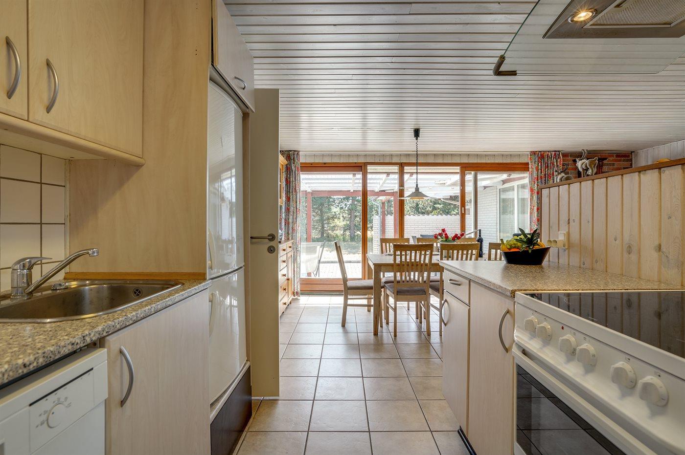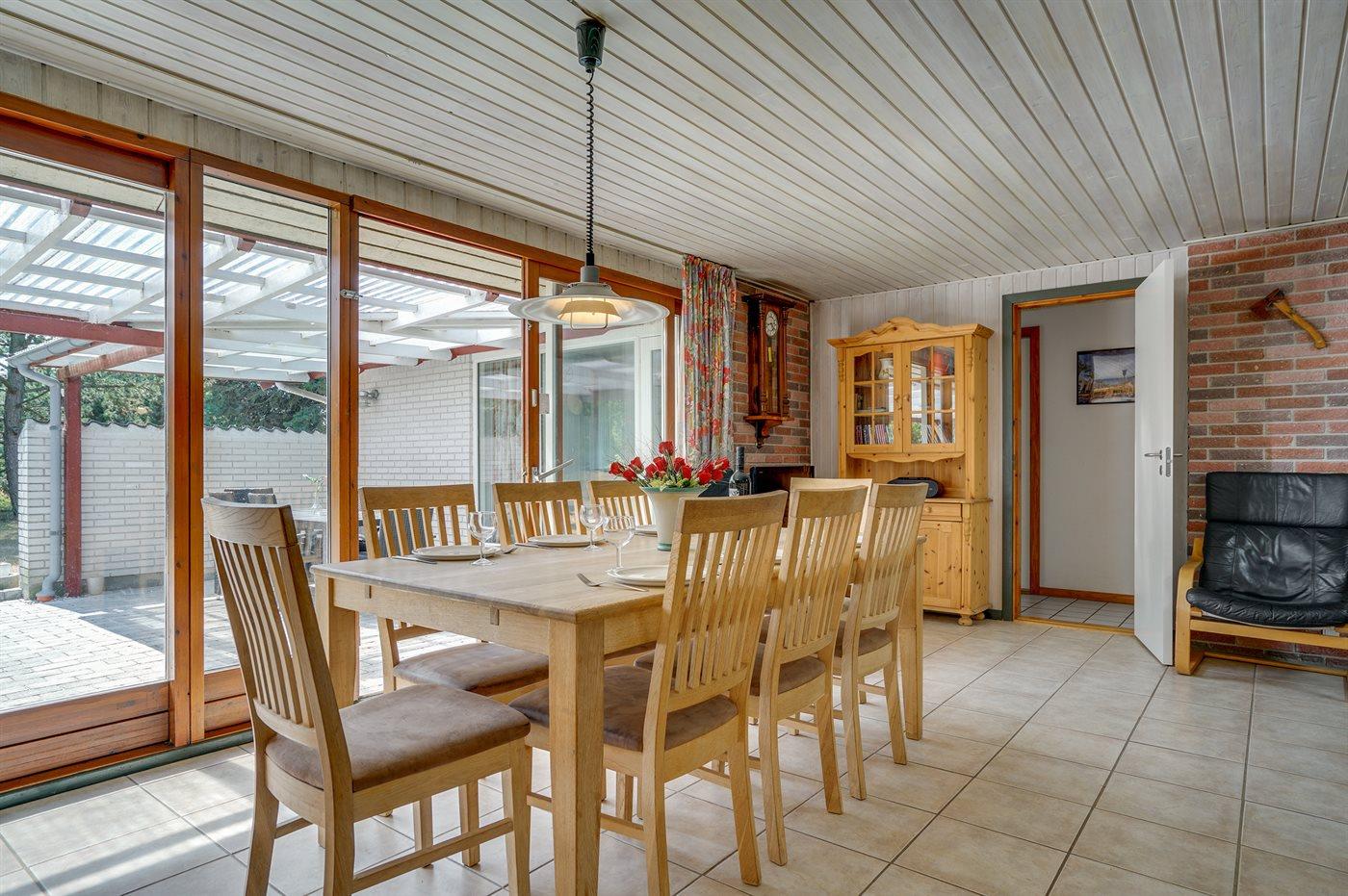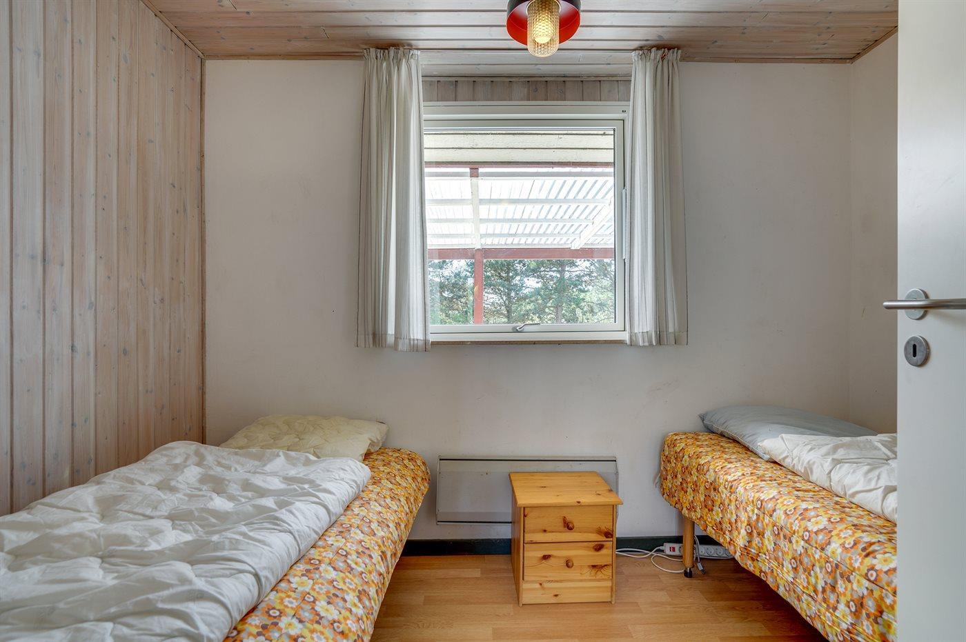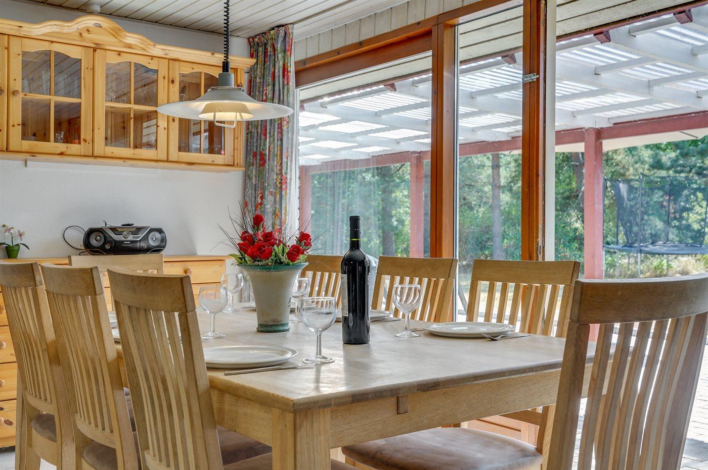 Skønt sommerhus i sten. Huset er beliggende på en naturgrund for enden af en blind vej - kun 400 m fra havet. Til huset hører såvel åben som overdækket terrasse med havemøbler. Huset er indrettet med dejlig stor opholdsstue med nyt klinkegulv og træbeklædte vægge og lofter. Sovepladserne fordeler sig på 4 soveværelser og er derfor velegnet som feriemål for 2 familier. Stuen er udstyret med brændeovn, TV med parabol (digital), DVD-afspiller, video, stereoanlæg med CD-afspiller og Wifi internet (computer skal medbringes). Køkkenet er indrettet med bl.a. fryser, mikrobølgeovn og opvaskemaskine. 2 badeværelser med klinkegulv og bruseniche. Dejlig spa-afdeling, der foruden 2-personers spa også indeholder en stor sauna. Der kan fra spa-afdelingen åbnes dør ud til terrassen. Huset opvarmes dels med brændeovn, dels med varmepumpe og dels med elradiatorer. Vaskemaskine og tørretumbler, høj barnestol og barneseng står også til rådighed for husets gæster. Der forefindes legeplads ganske tæt ved huset. Et godt sommerhus året rundt.