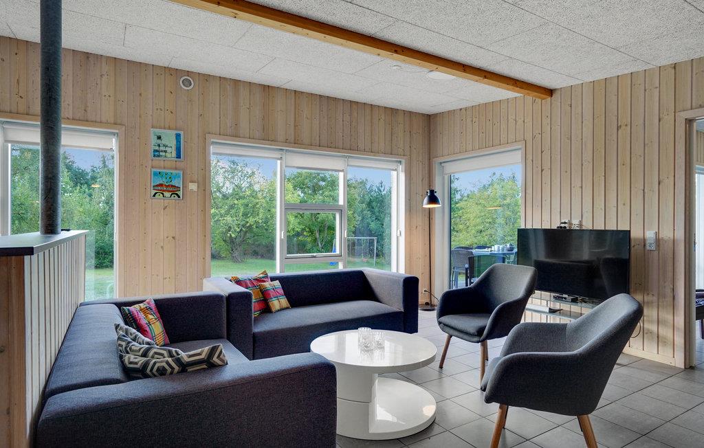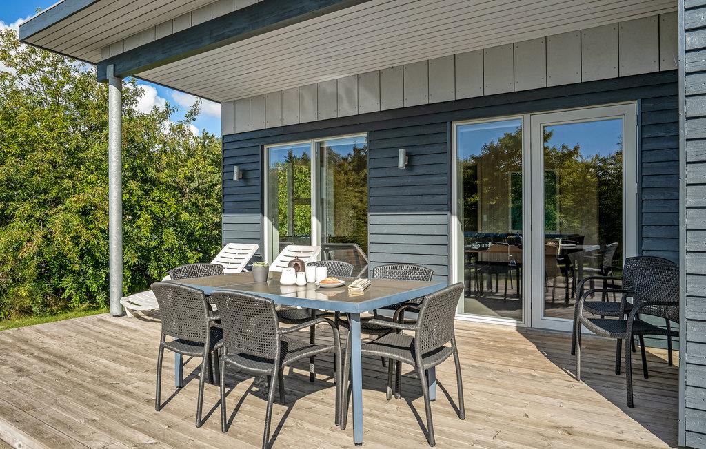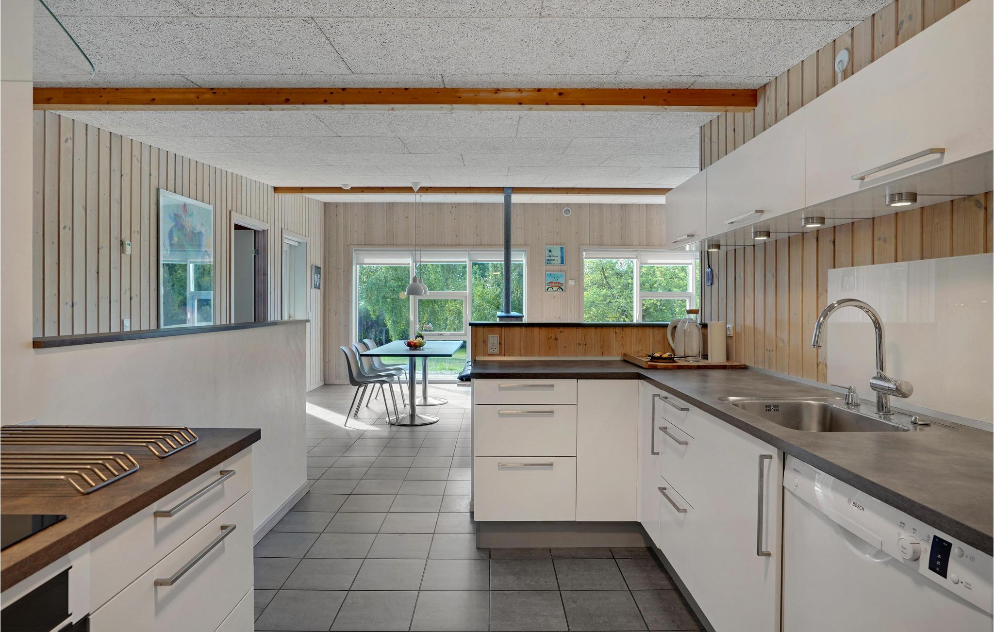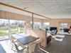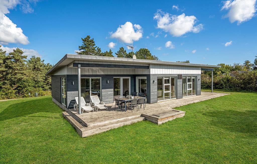 I såvel materialevalg, indretning, arkitektur og interiør er feriehuset kvalitetsmæssigt gennemført. I det skønne hus er der masser af plads til at to familier kan holde en dejlig ferie sammen. Det er indrettet med et flot køkken/alrum, fire soverum med gode senge samt to lækre badeværelser, hvoraf det ene indeholder et herligt spabad til to pers. samt en sauna. I aktivitetsrummet er der mulighed for dyst i bl.a. bordfodbold og pool. DVD kan afspilles på Playstation. Udendørs venter de store terrasser, hvor I kan nyde freden og roen. Der er gåafstand til den børnevenlige strand. 5 min. kørsel til Ebeltoft