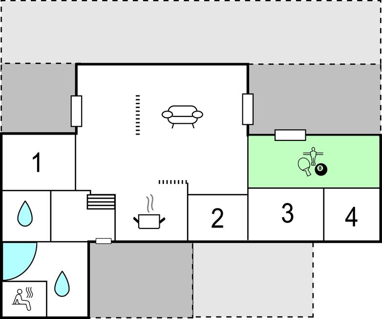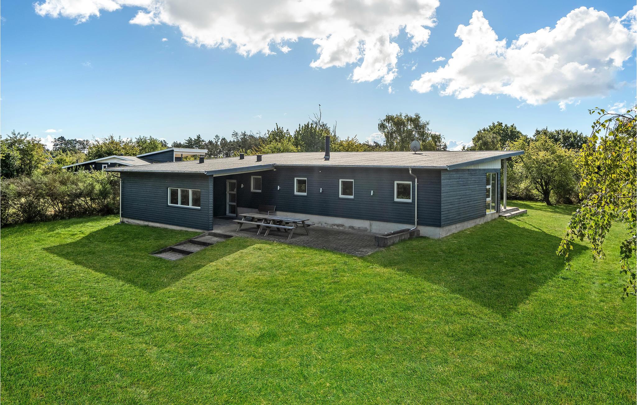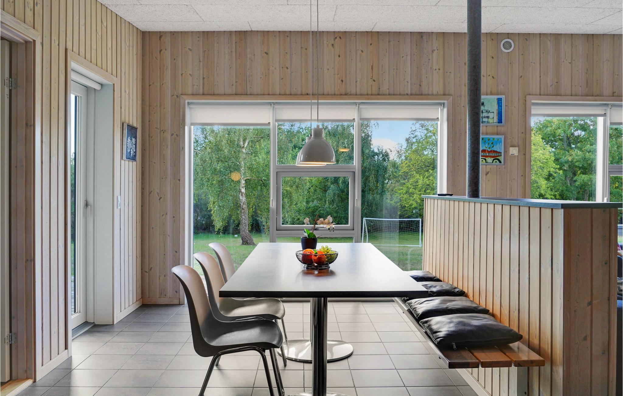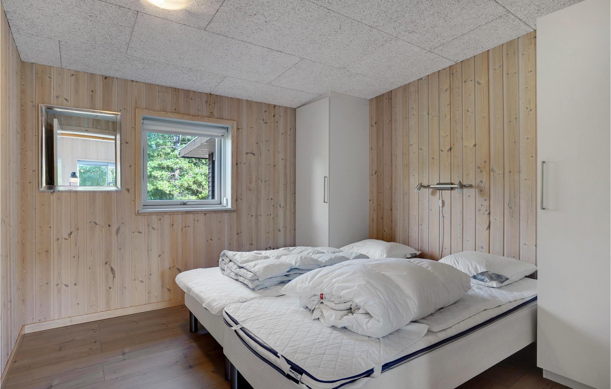 I såvel materialevalg, indretning, arkitektur og interiør er feriehuset kvalitetsmæssigt gennemført. I det skønne hus er der masser af plads til at to familier kan holde en dejlig ferie sammen. Det er indrettet med et flot køkken/alrum, fire soverum med gode senge samt to lækre badeværelser, hvoraf det ene indeholder et herligt spabad til to pers. samt en sauna. I aktivitetsrummet er der mulighed for dyst i bl.a. bordfodbold og pool. DVD kan afspilles på Playstation. Udendørs venter de store terrasser, hvor I kan nyde freden og roen. Der er gåafstand til den børnevenlige strand. 5 min. kørsel til Ebeltoft