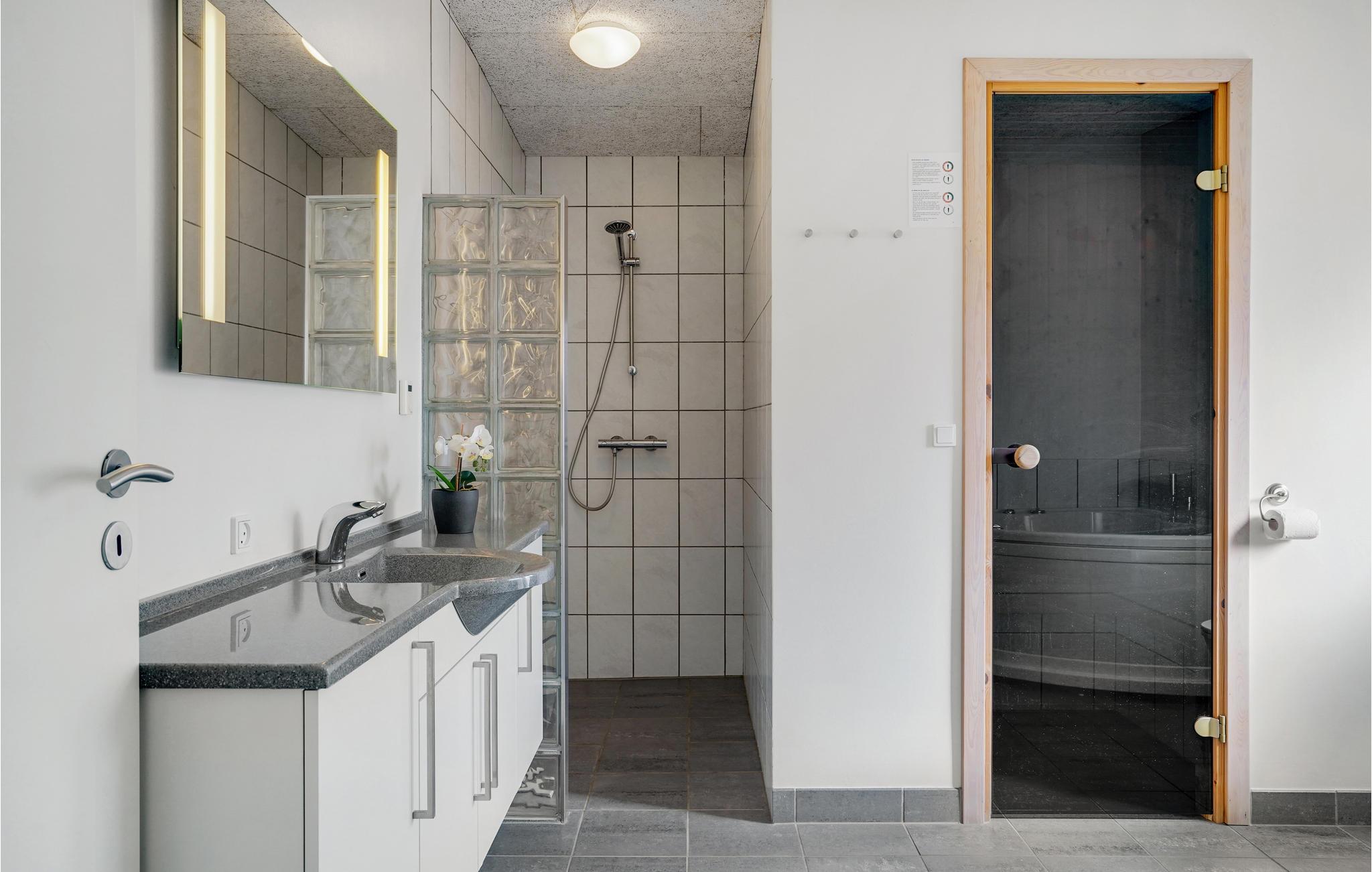 Lækkert feriehus i Ebeltoft med sauna, spabad og aktivitetsrum tæt på strand og by.
