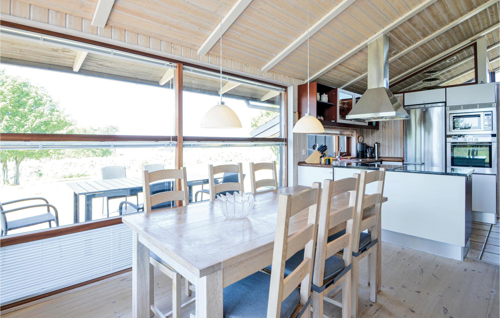 Feriehus af højeste standard, beliggende nær ved kysten og med kig til vandet. Det er veludstyret, flot møbleret og danner gode rammer om ferieophold for såvel en som to familier. Da huset ligger på en plan grund og har gode, sydvendte terrasser er det dejligt at opholde sig udendørs. Indendørs kan I nyde hyggelige stunder ved brændeovnen og en film i tv, eller I kan benytte det flotte spabad og saunaen. I bil er der ikke langt til Ebeltoft med små spisesteder og shoppingmuligheder.