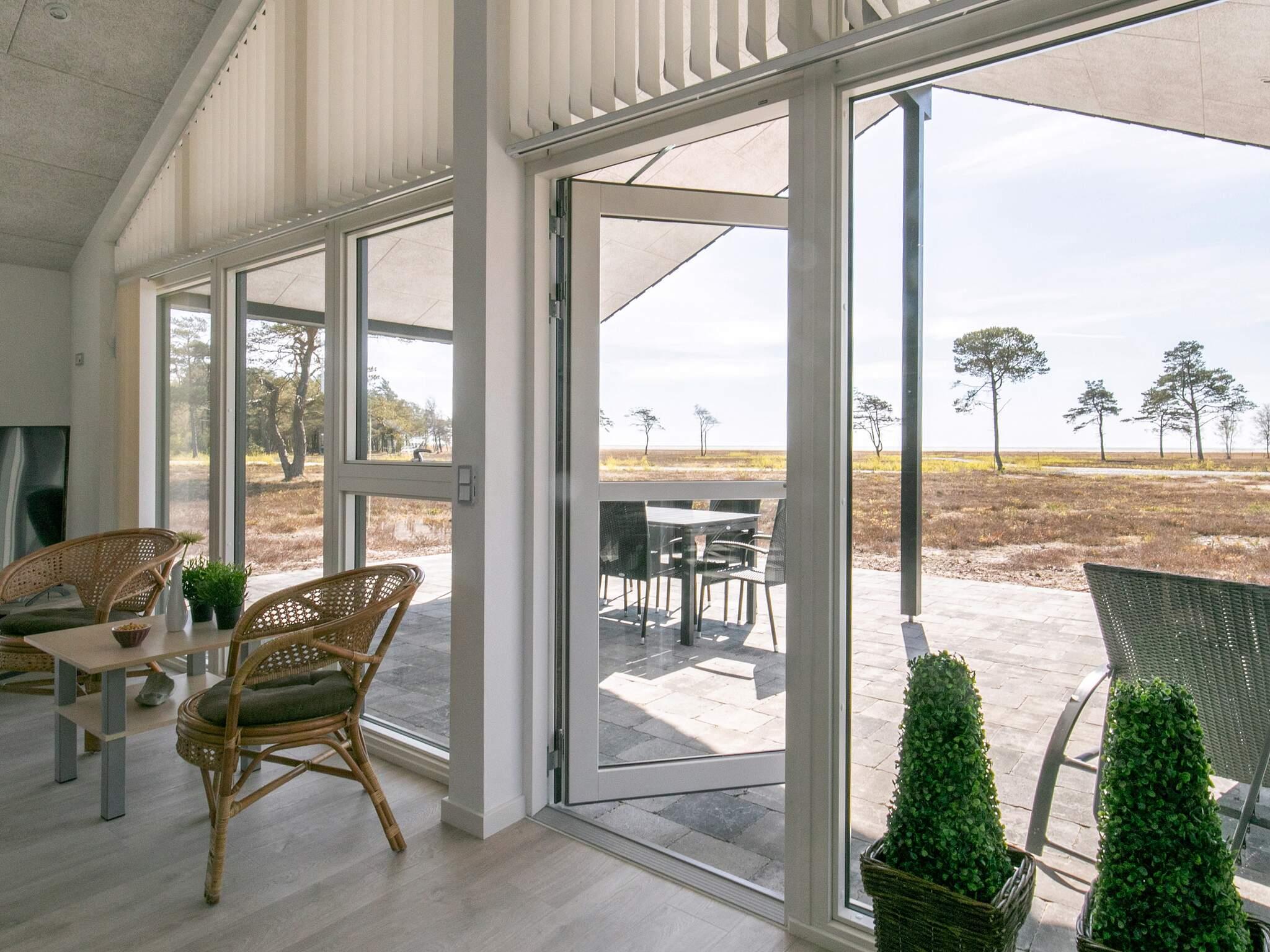 Sommerhusets hjerte udgøres af et stort og åbent opholdsrum med god akustik i forbindelse med det godt udstyrede køkken. Her er plads til at alle kan mødes og hygge med madlavning, ismaskine til isterninger, måltider, spil, en god film eller hvad humøret nu lige dikterer. Rummet har flere vinduer, så det fascinerende lys strømmer ind, og på de varme dage kan I lukke op til terrassen.