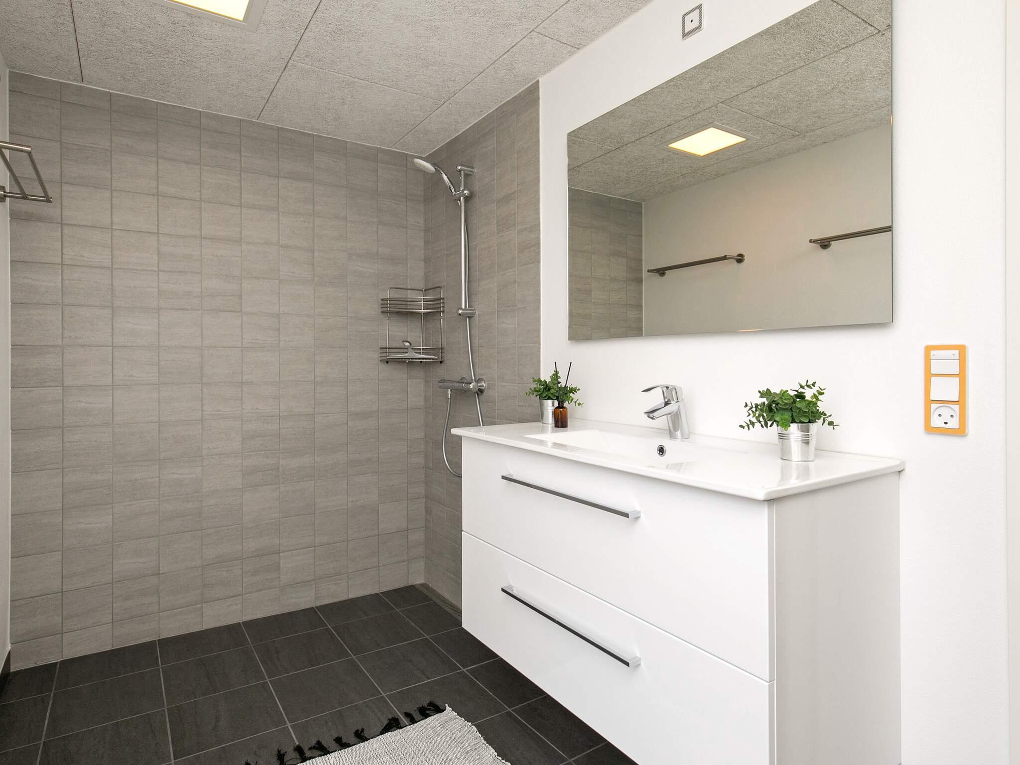 Der er to gode badeværelser med bruseniche og gulvvarme, og det ene er med infrarød sauna til hyggelige stunder. Desuden er huset forsynet med luft/vand varmepumpe, så der kan forventes små udgifter til forbrug.