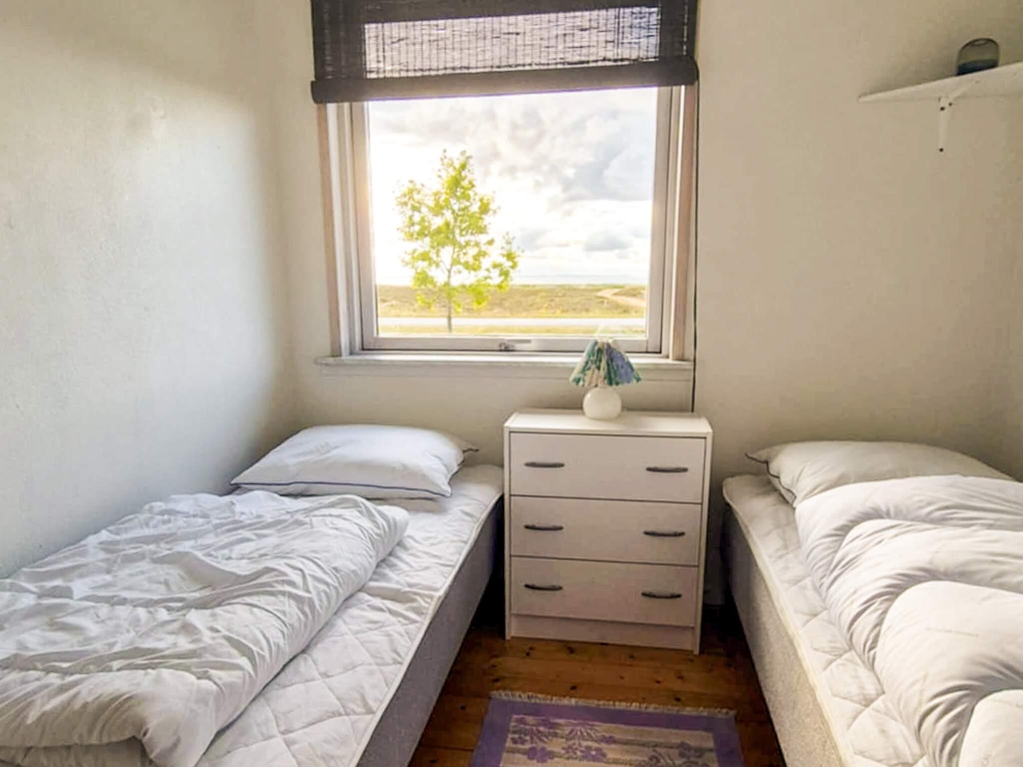 Sommerhus beliggende syd for Vesterø Havn i idylliske naturomgivelser med panoramaudsigt over lyngen og den populære sandstrand Kongestrand og nok øens mest børnevenlige strand. Huset er indrettet med tre værelser, et badeværelse med gulvvarme og vaskemaskine. Dejligt køkken med spiseplads og hyggelig stue med brændeovn. Dejlig grund med sandkasse og gynger og grunden er samtidig indhegnet. Udlejes ikke til ungdomsgrupper.