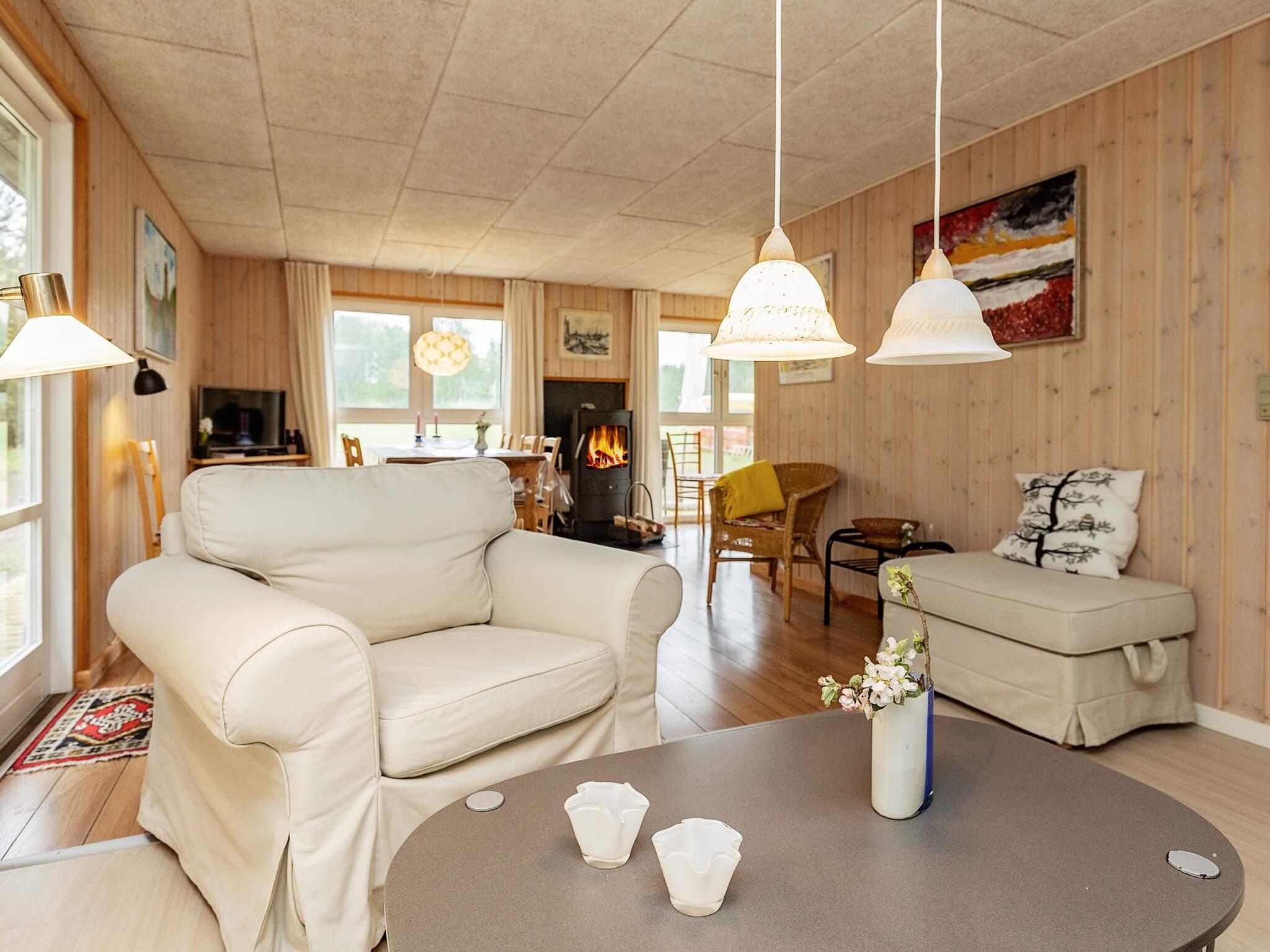 Dette feriehus ligger i naturskønne omgivelser, ikke langt fra den lille havneby Vesterø, hvor færgen til øen sejler. Huset er veludstyret og byder på lyst, åbent køkken og opholdsstue indrettet til familielivet, komplet med brændeovn. Fra stuen kan du træde ud på den sydvestvendte terrasse, perfekt til at nyde de fredelige omgivelser, slappe af og nyde den friske luft.