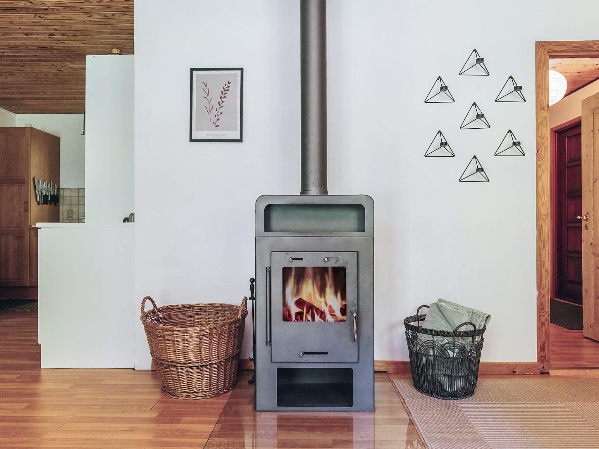Indendørs byder huset på en indbydende og rummelig indretning med stort badeværelse med brusehjørne. Køkken/alrum med spise- og opholdsstue, hvor der er en hyggelig brændeovn.