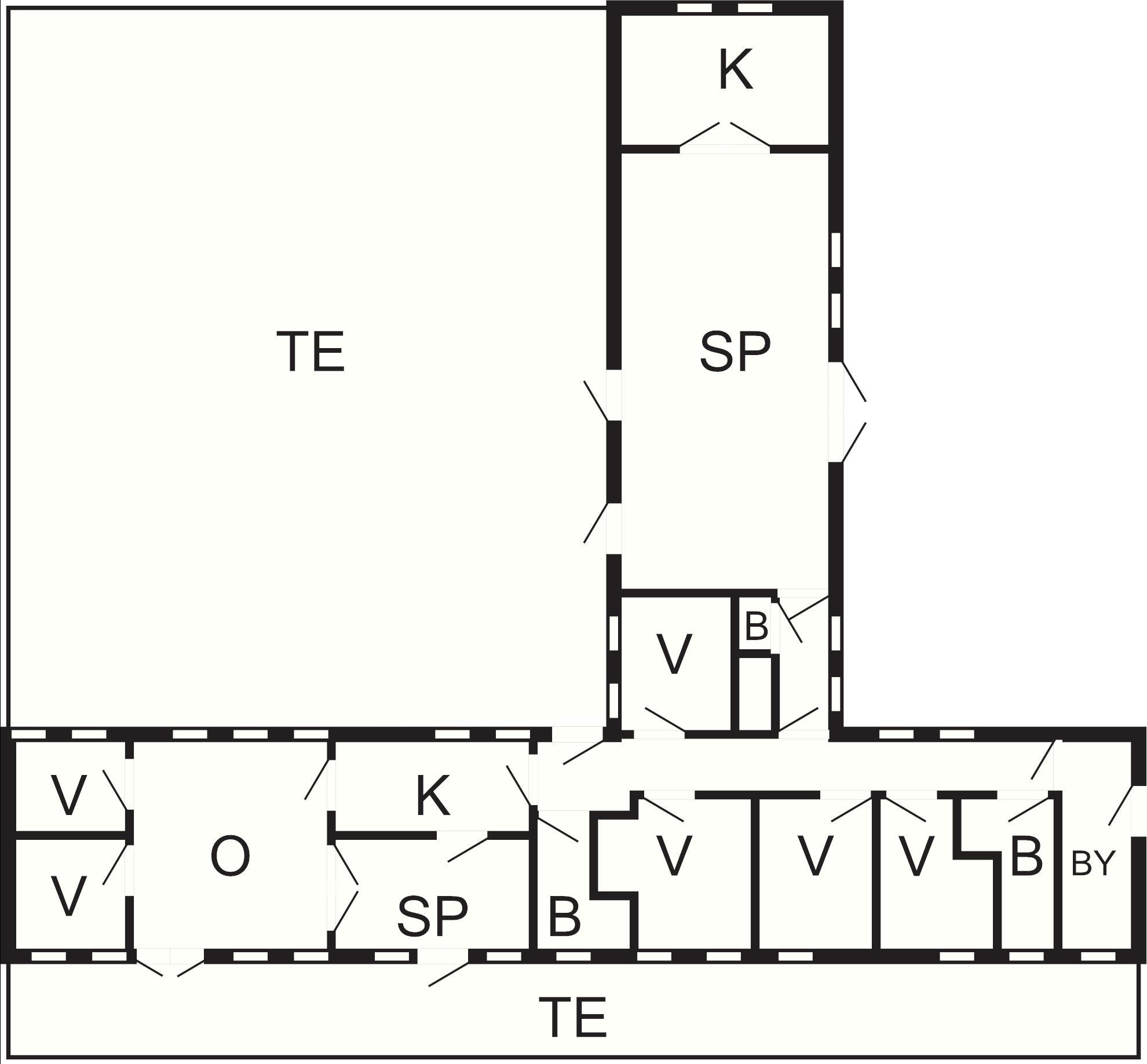 6 Soveværelser: (1DS)+(1DS)+(1DS)+(1DS)+(1DS)+(2S)