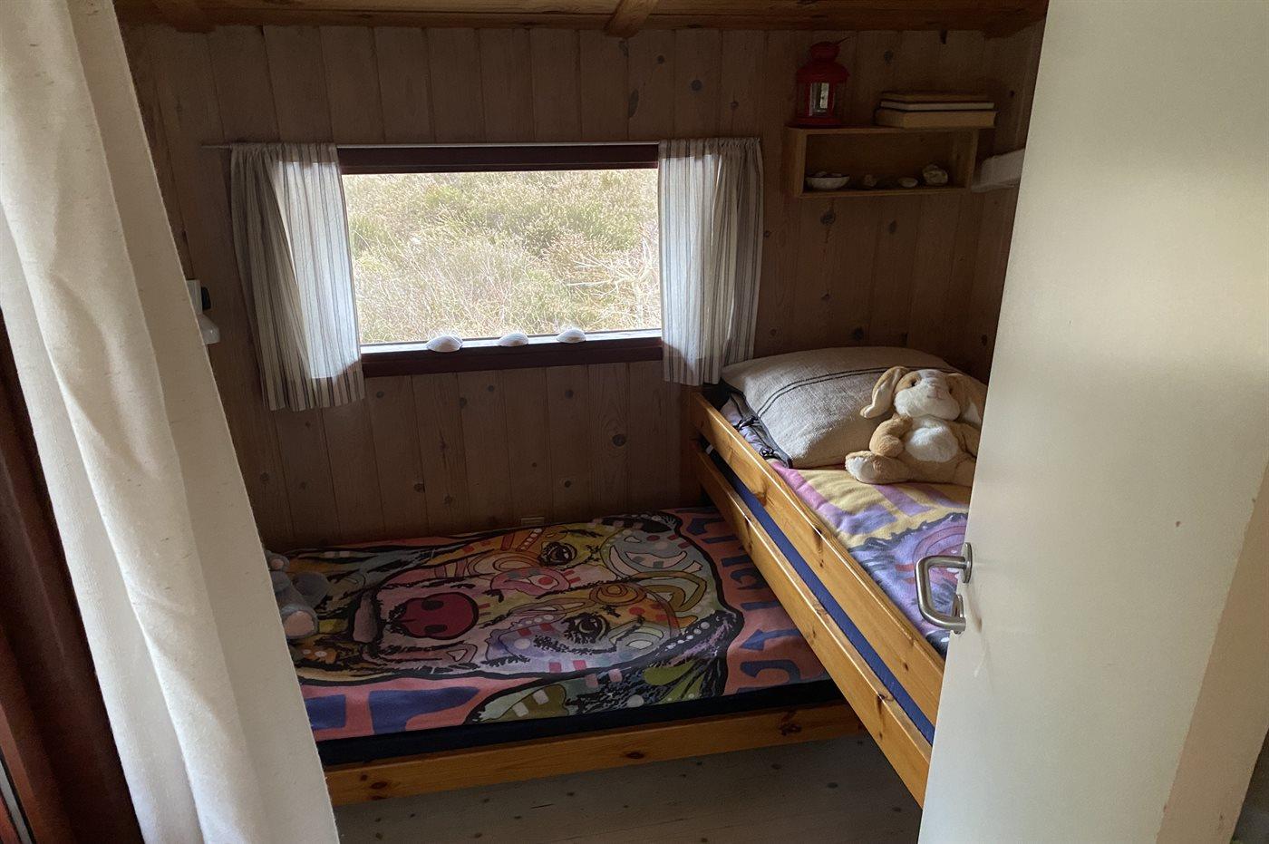 Der er i alt 3 soveværelser. Sovepladserne fordeler sig på: 2 sovepladser i dobbeltseng. 4 sovepladser i køjesenge. Derudover er der 1 stk. barneseng.