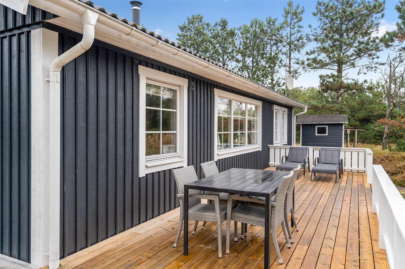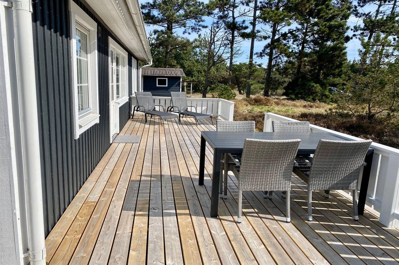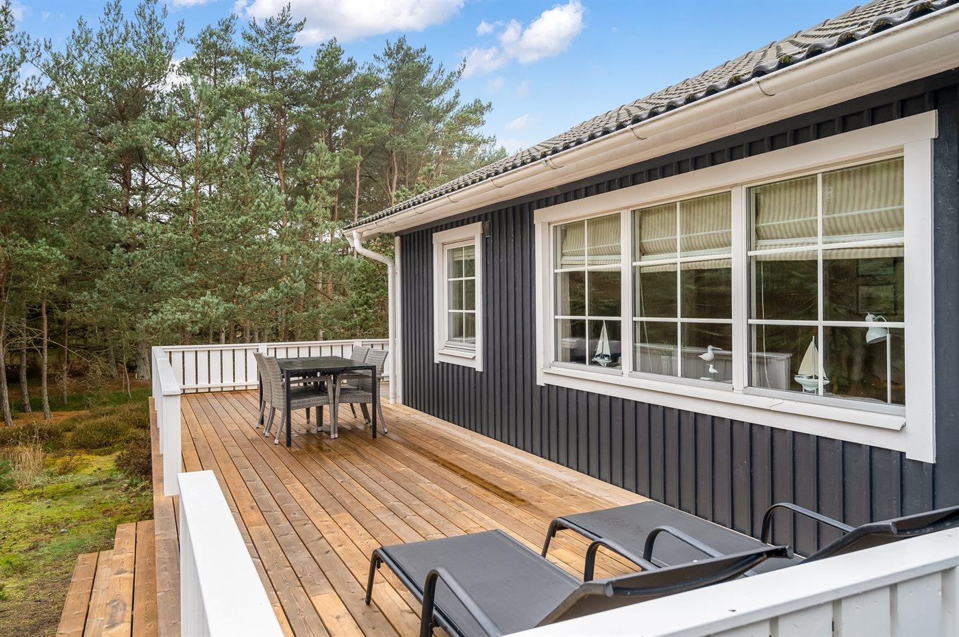 Ferieboligen er beliggende på en 2596 m² stor naturgrund. Der er 300 m til havet. Nærmeste forretning er beliggende i en afstand af 1000 m. Der er en golfbane i en afstand af 3000 m. Til ferieboligen hører 25 m² terrasseareal. Desuden er der 5 m² overdækket terrasse. Der er redskabsrum. Parkering ved ferieboligen.