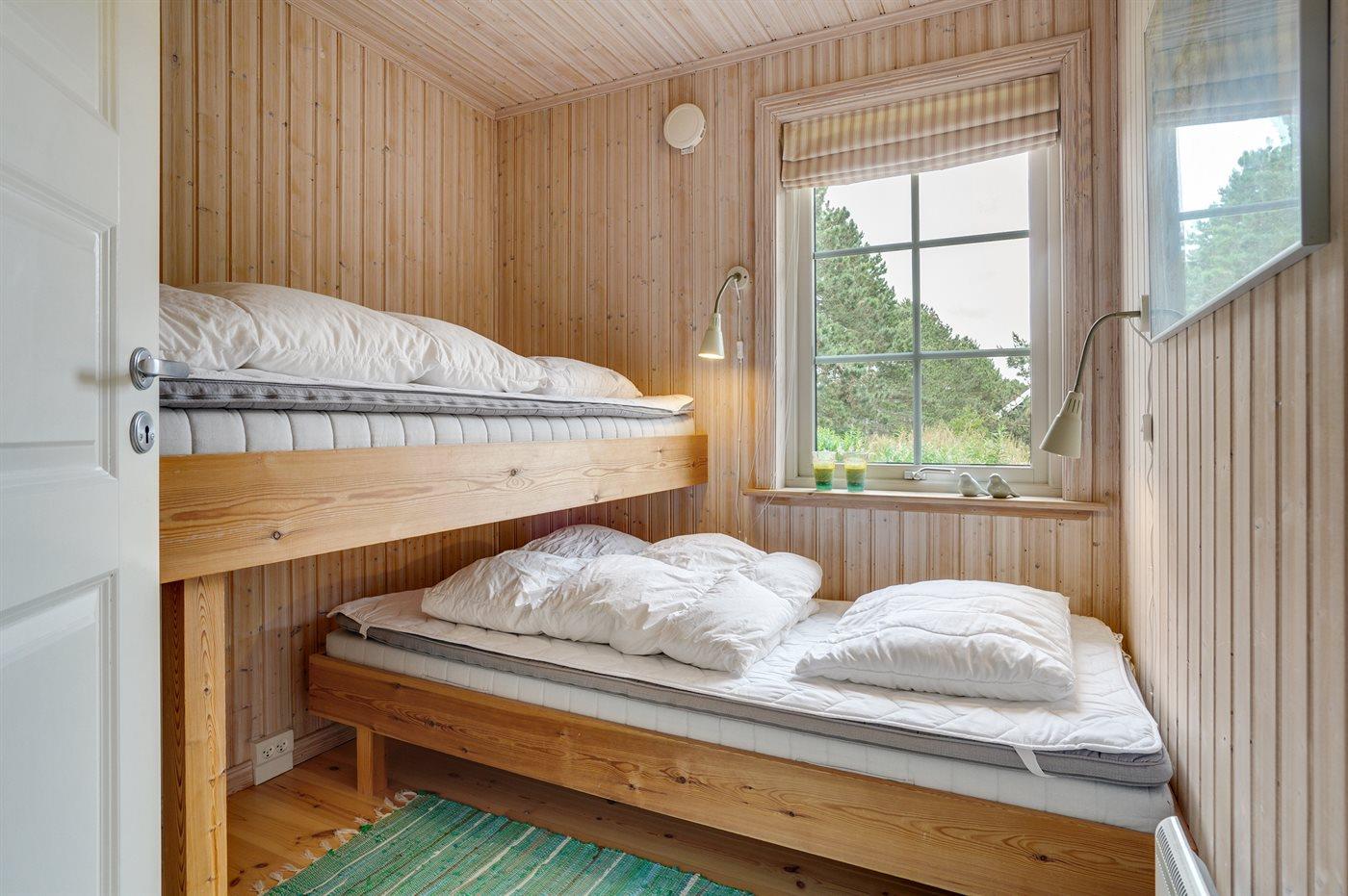 Der er i alt 3 soveværelser. Sovepladserne fordeler sig på: 2 sovepladser i dobbeltseng. 2 sovepladser i enkeltsenge. 2 sovepladser i sovesofa (dobbelt).