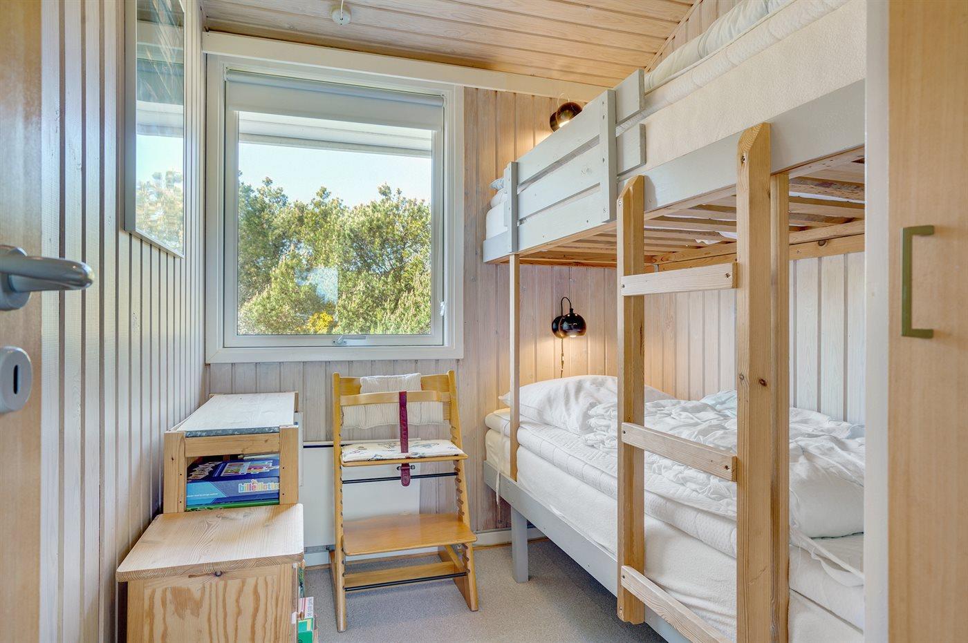 Der er i alt 3 soveværelser. Sovepladserne fordeler sig på: 2 sovepladser i dobbeltseng. 2 sovepladser i enkeltsenge. 2 sovepladser i køjeseng. Derudover er der 1 stk. barneseng.