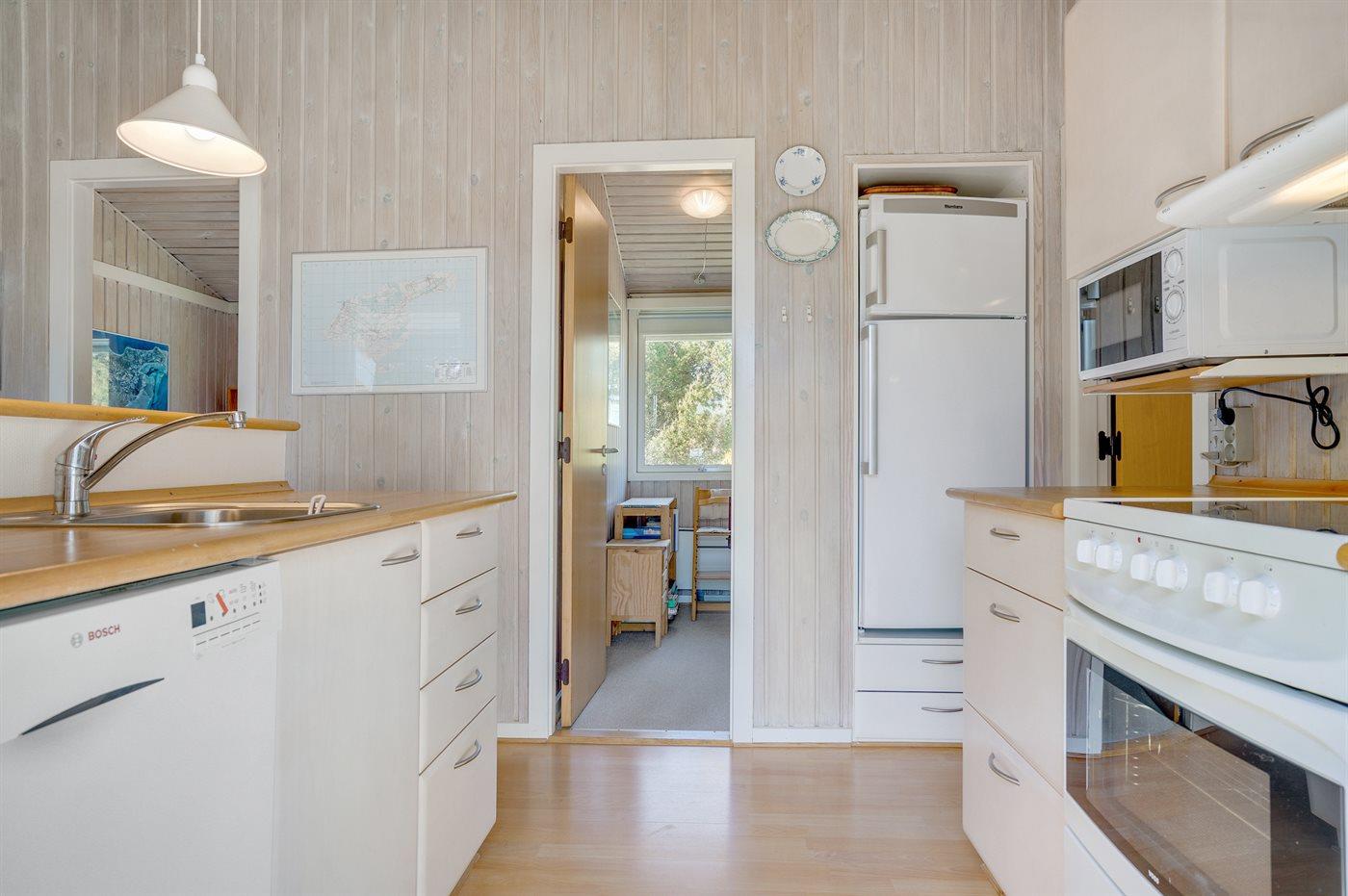 Køkkenet er udstyret med 1 køleskab. Der er 4 keramiske kogeplader, varmluftovn, mikrobølgeovn samt opvaskemaskine.