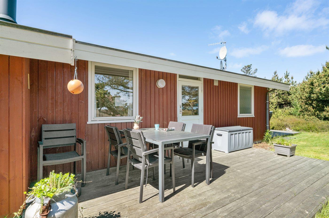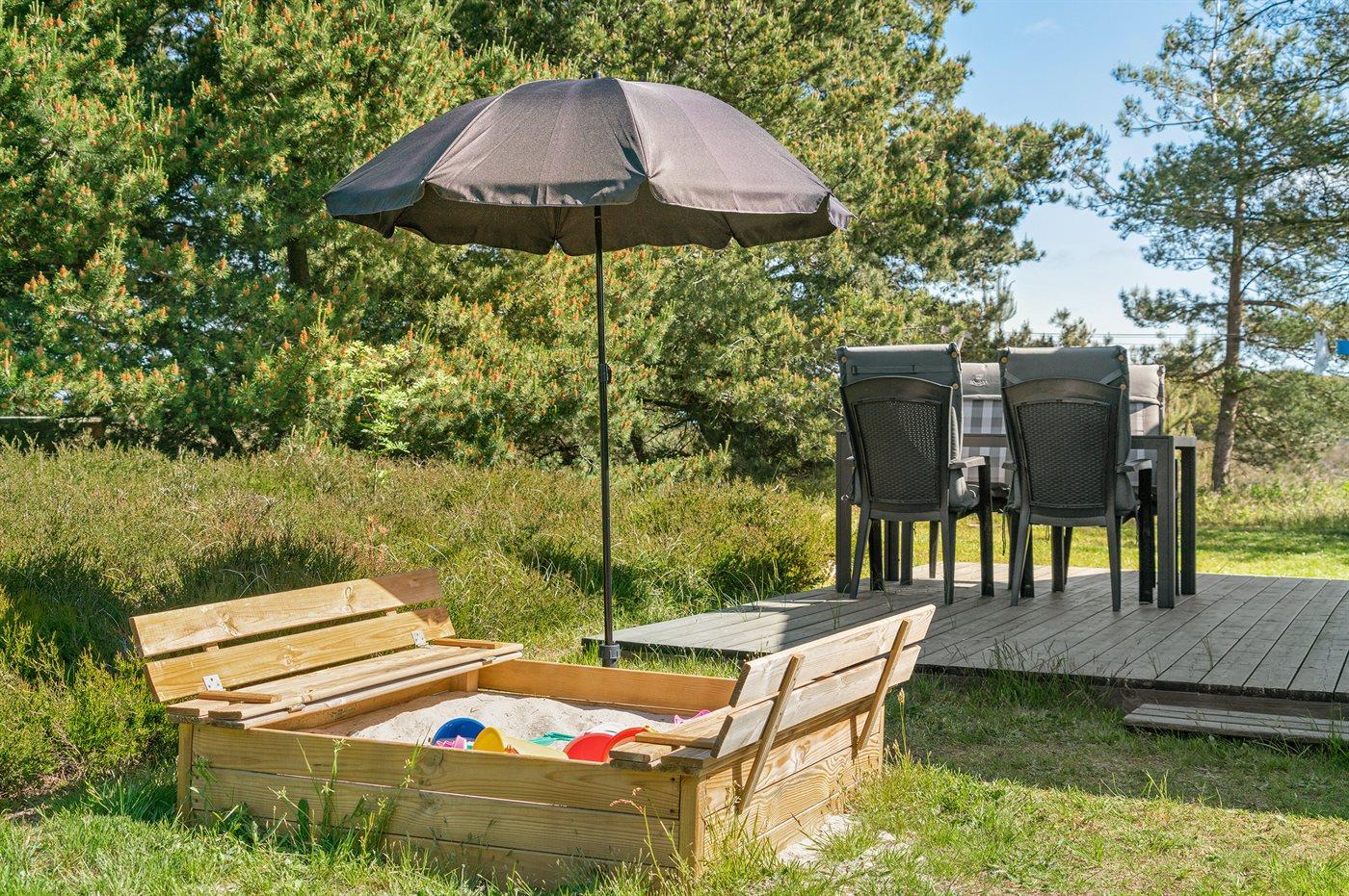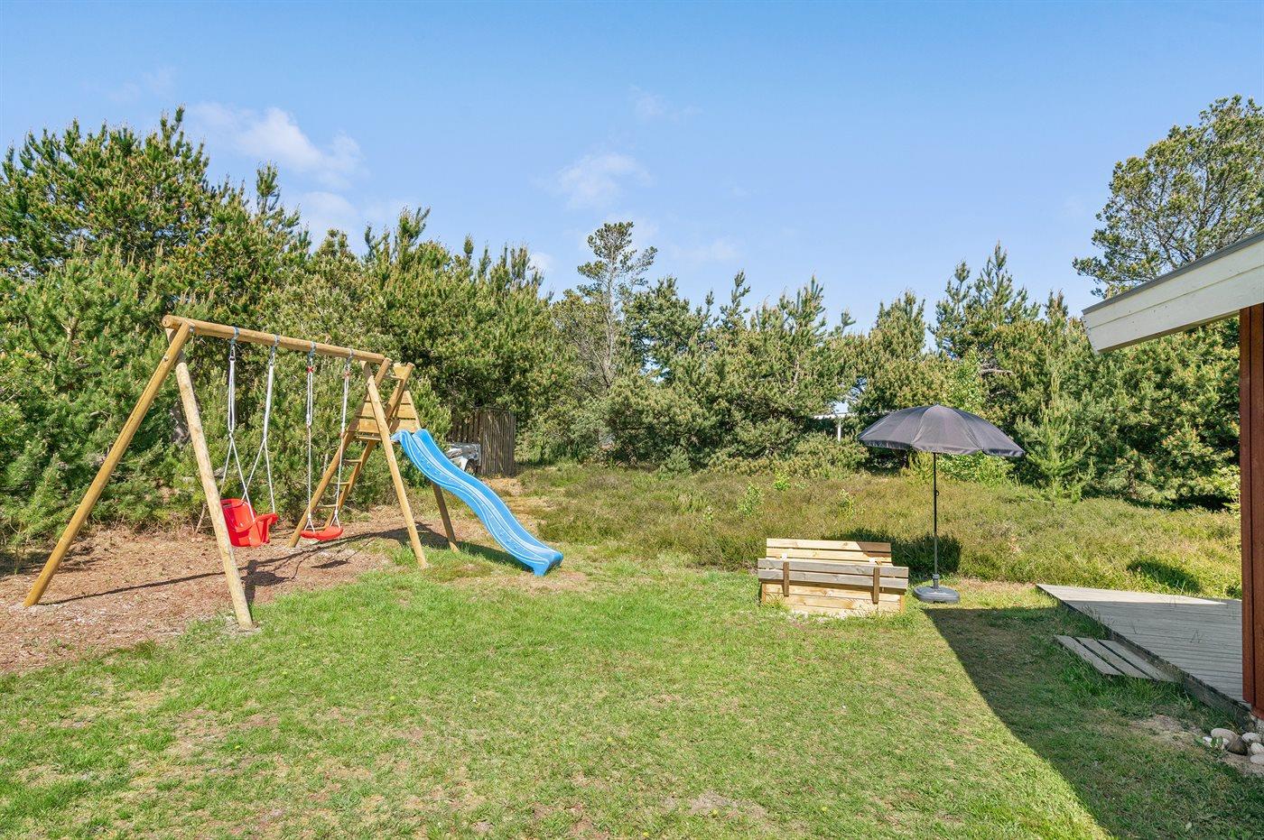 Ferieboligen er beliggende på en 1400 m² stor naturgrund. Der er 350 m til havet. Nærmeste forretning er beliggende i en afstand af 1000 m. Der er en golfbane i en afstand af 3500 m. Til ferieboligen hører 60 m² terrasseareal. Desuden er der 15 m² overdækket terrasse. Gynge. Sandkasse. Parkering ved ferieboligen.