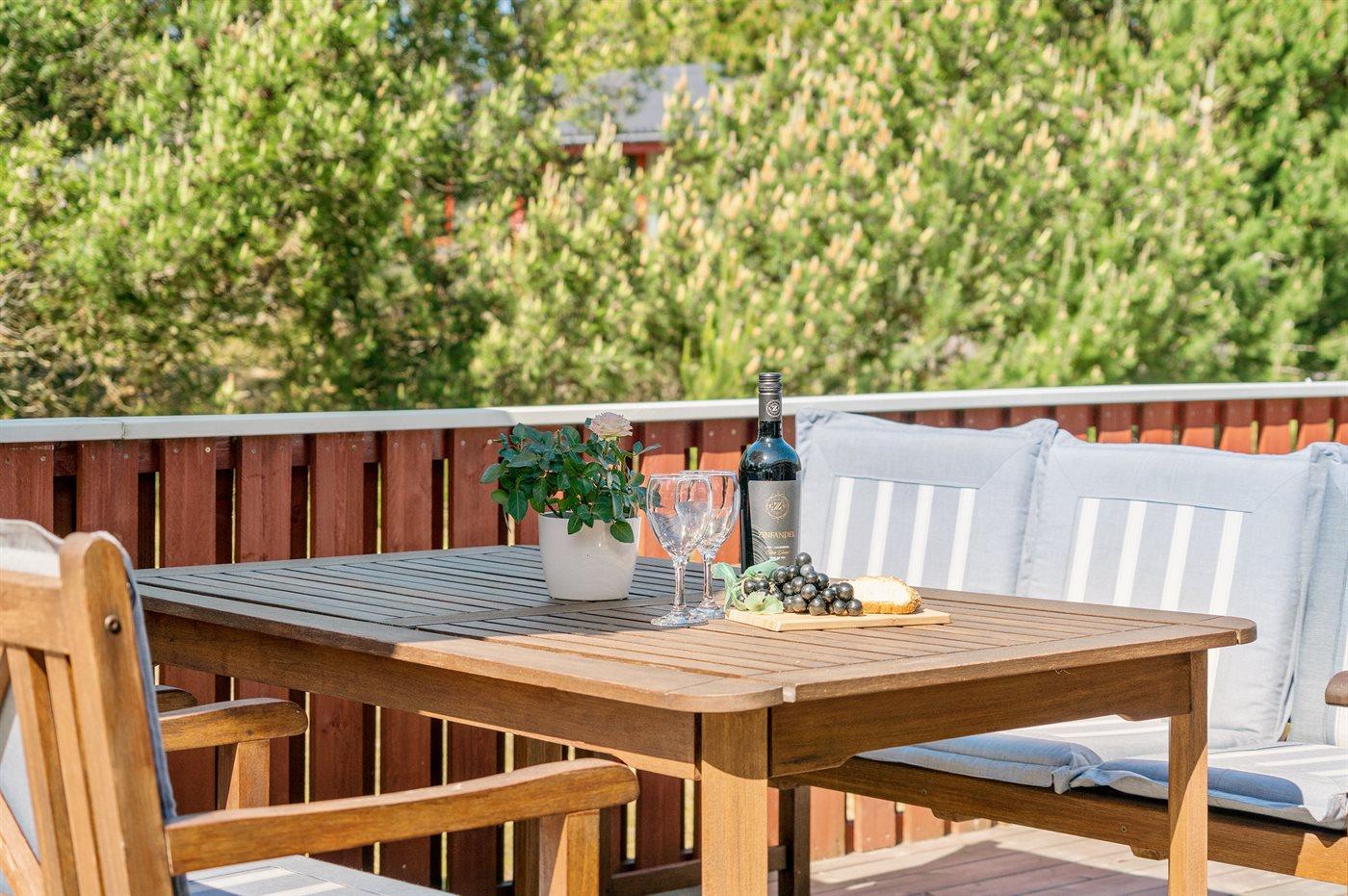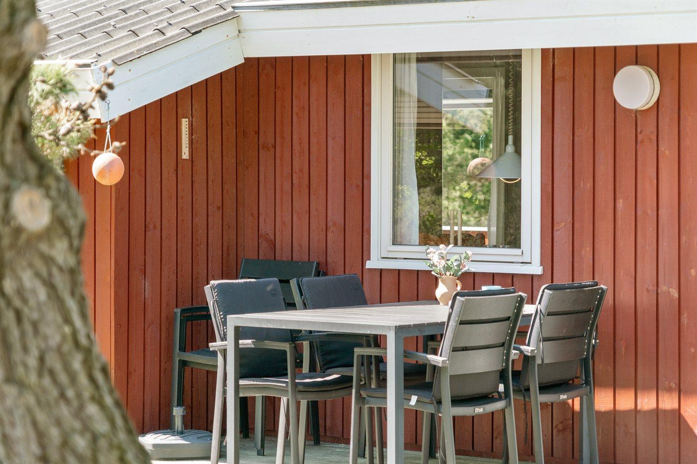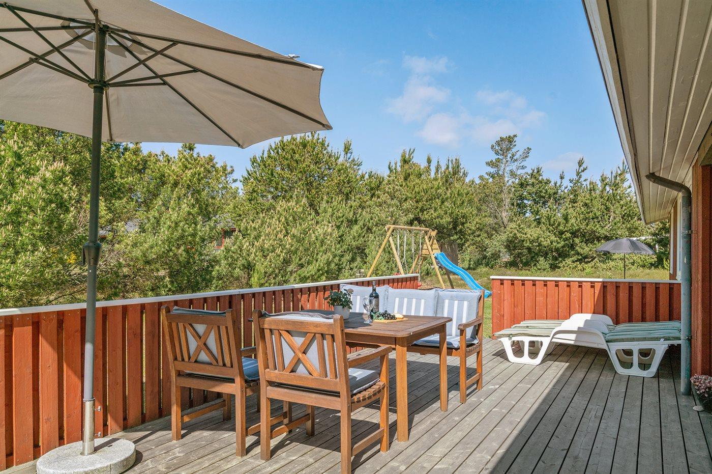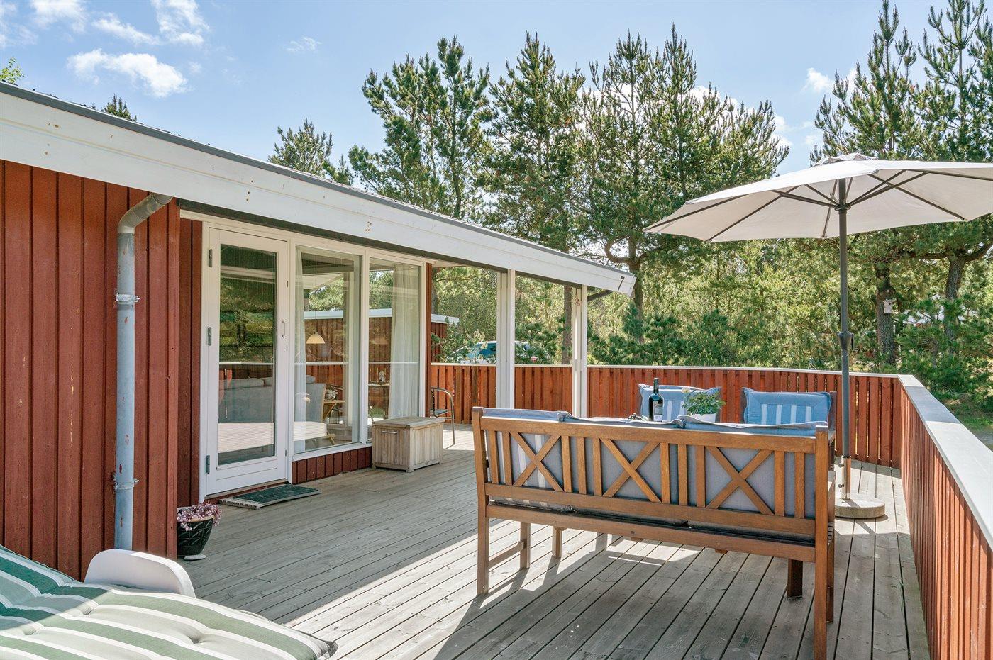 Hyggeligt træhus på Læsø med stor terrasse, naturgrund og tæt på havet.