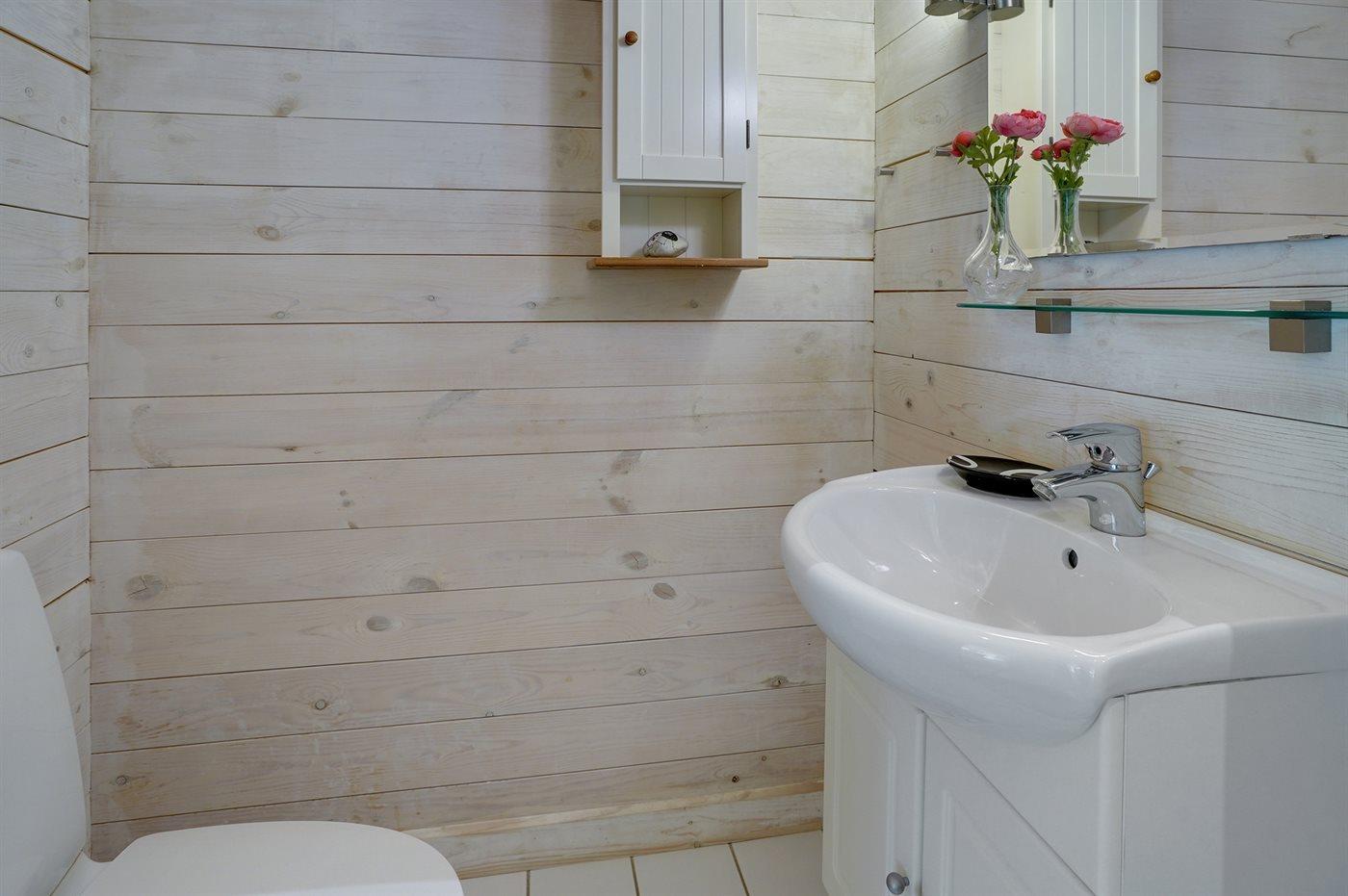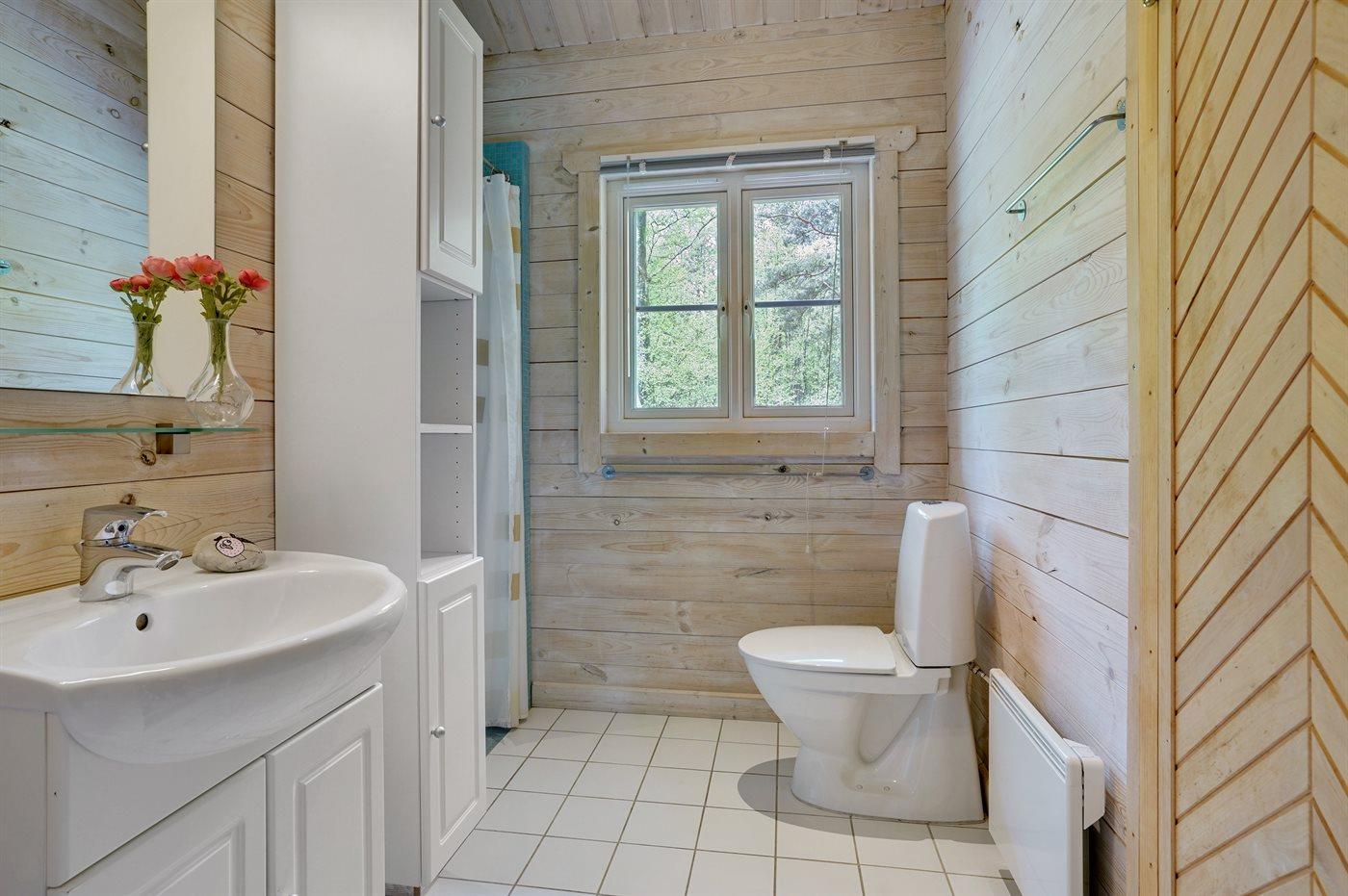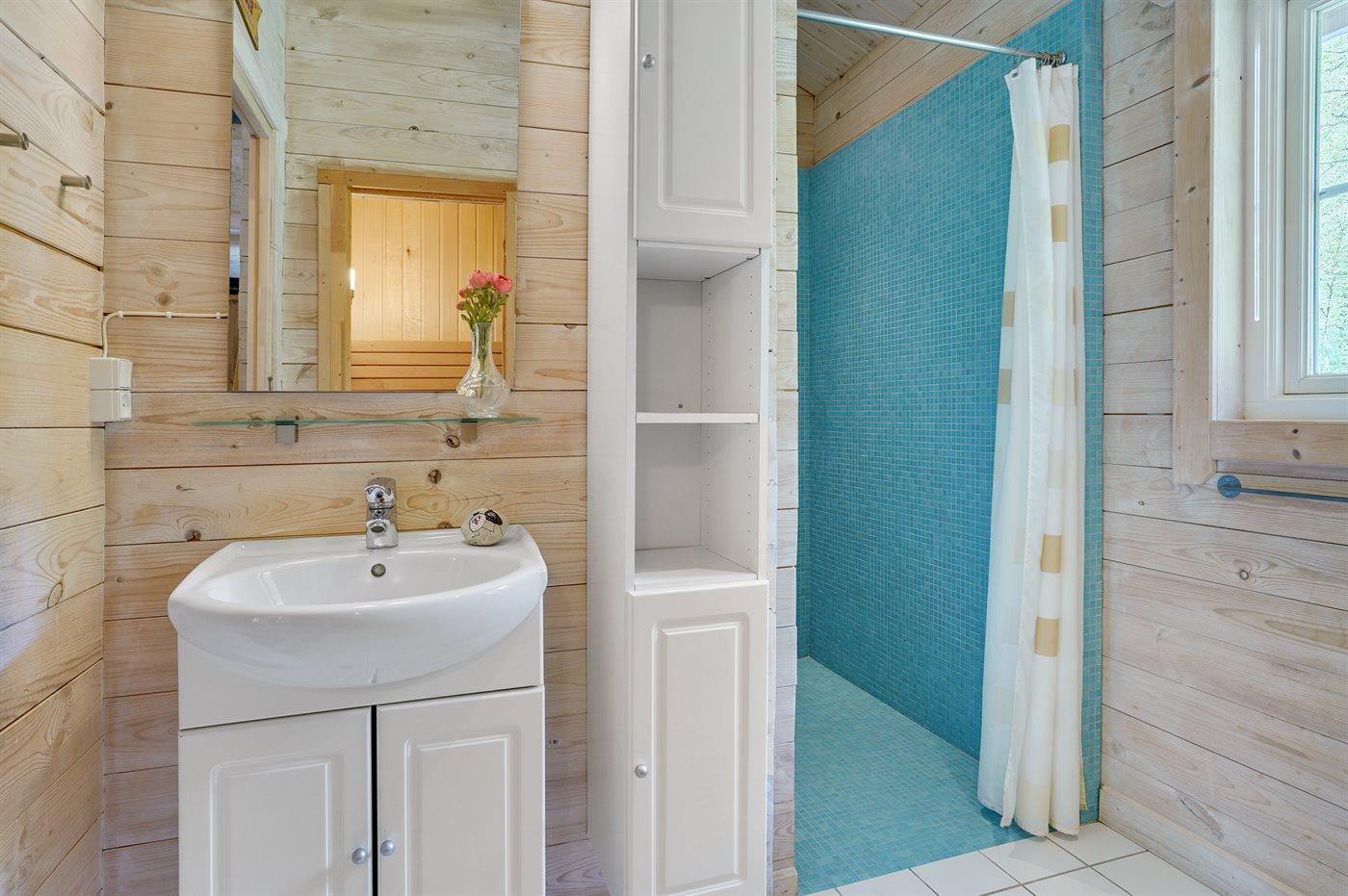 Der er 1 badeværelse med bruseniche og 2 toiletter, heraf 1 gæstetoilet. Der er gulvvarme på 1 badeværelse. Der er gulvvarme på gæstetoilettet. I saunaen er der mulighed for afslapning.